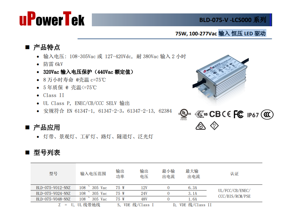 • 应用 路灯、隧道灯、泛光灯、工矿灯、LED灯条灯带