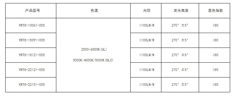 ◇DLC/UL认证,整灯寿命高达50000hrs,质保5年。