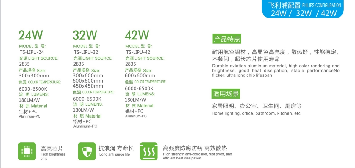 • 灯具尺寸 300*300mm、300*450mm、600*300mm