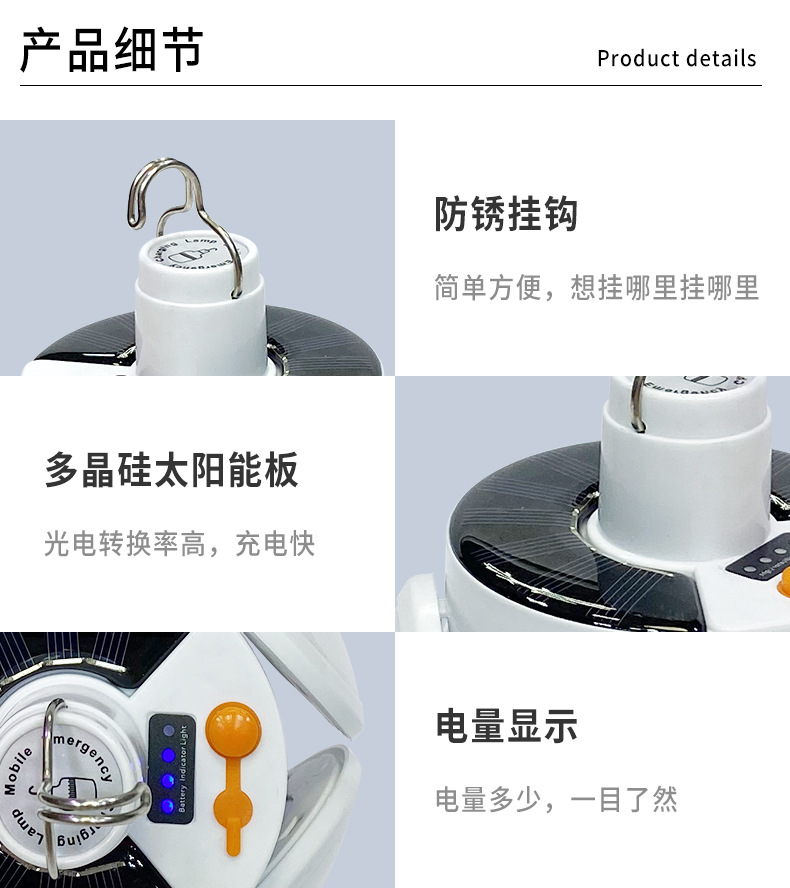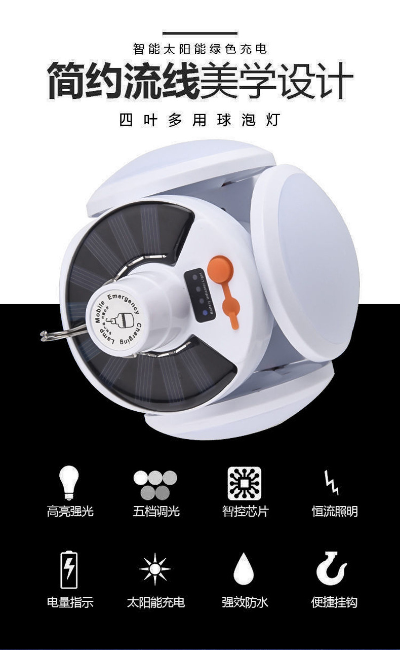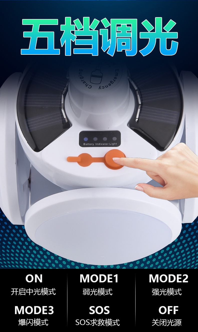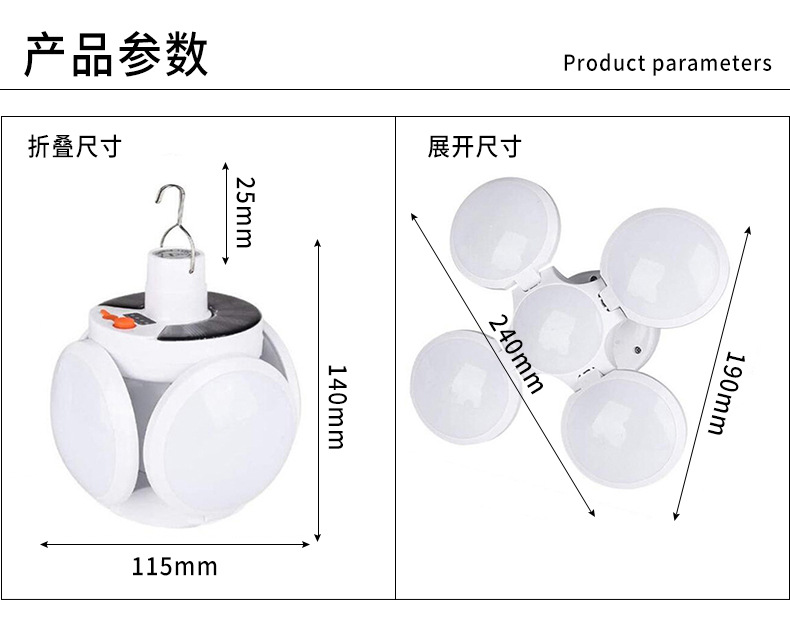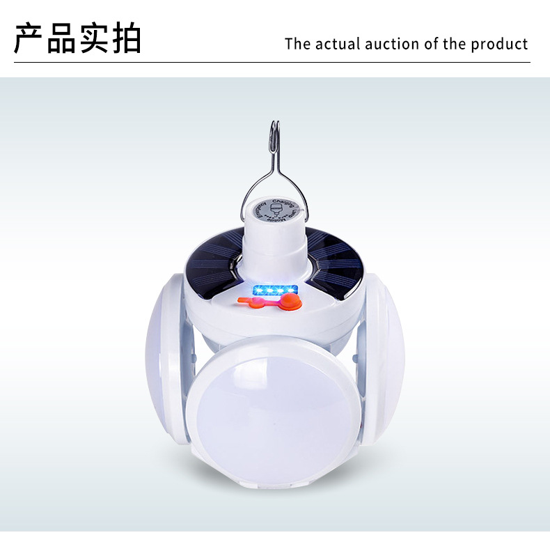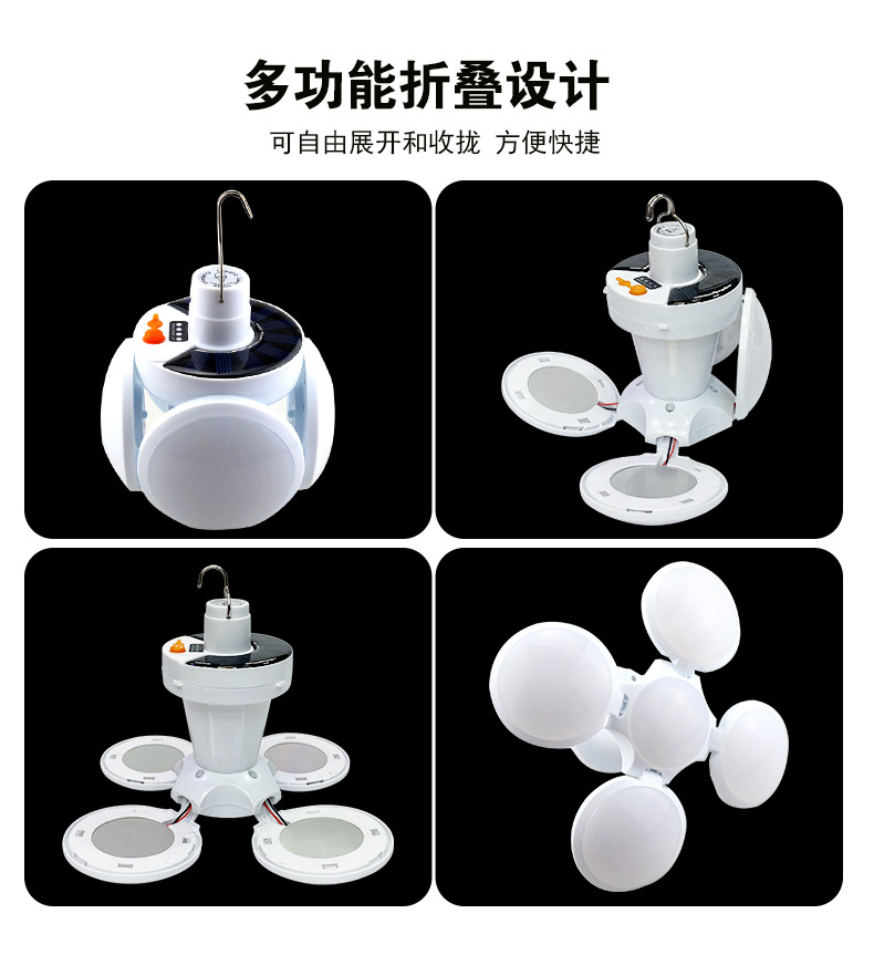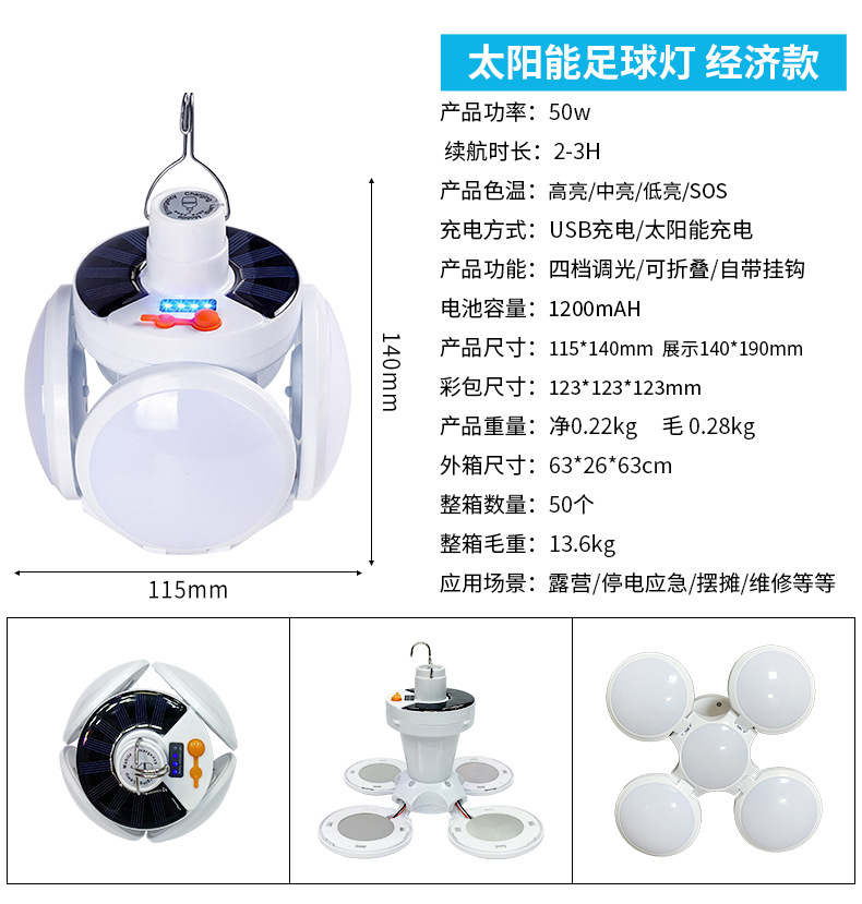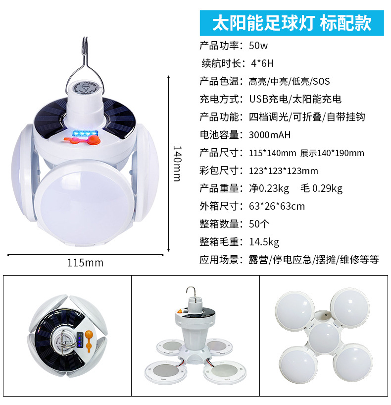 跨境led高亮足球灯2029挂式折叠露营灯遥控太阳能折叠足球