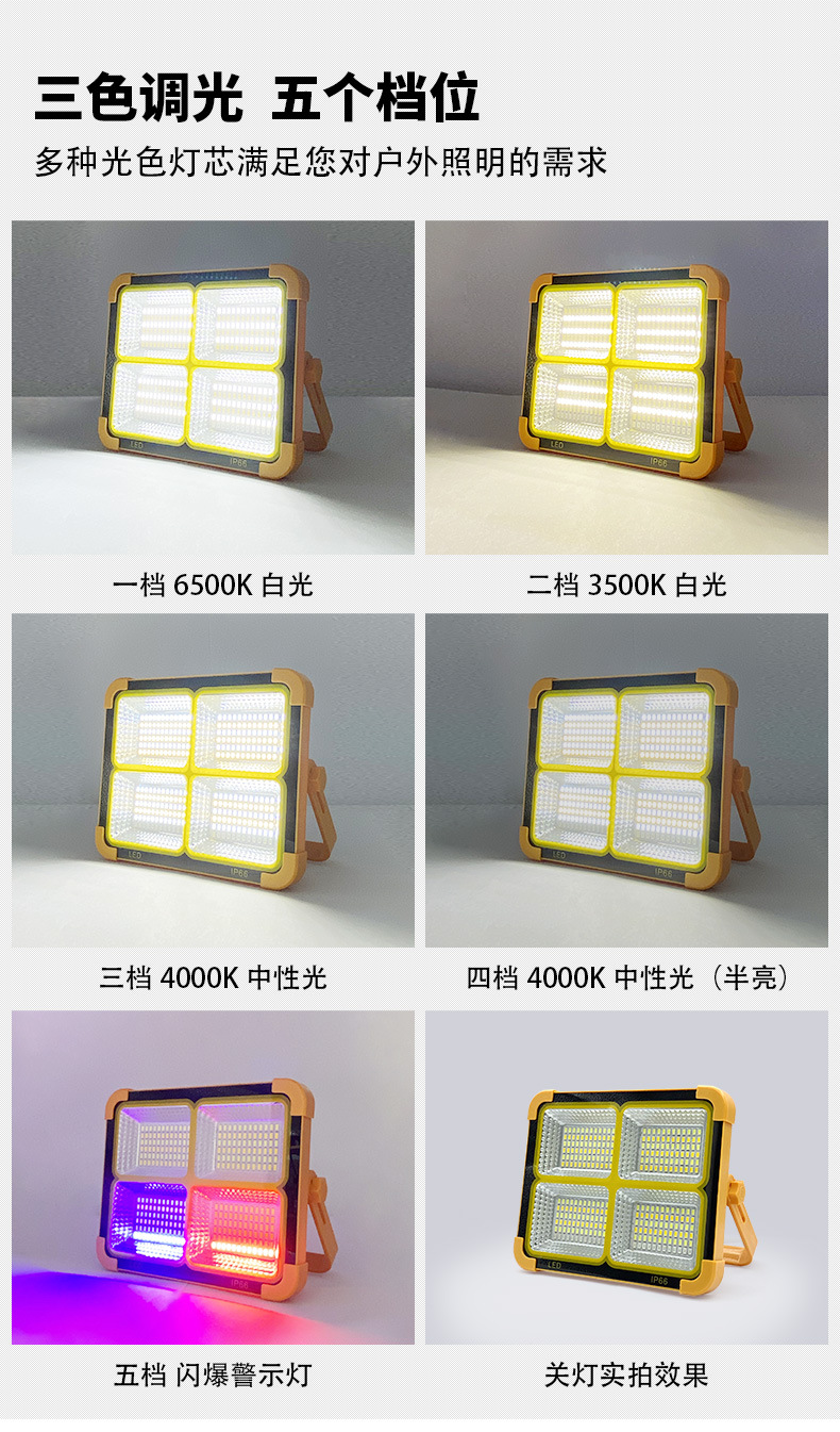 多功能户外露营灯手提式强光led野营灯500W双色调光太阳能
