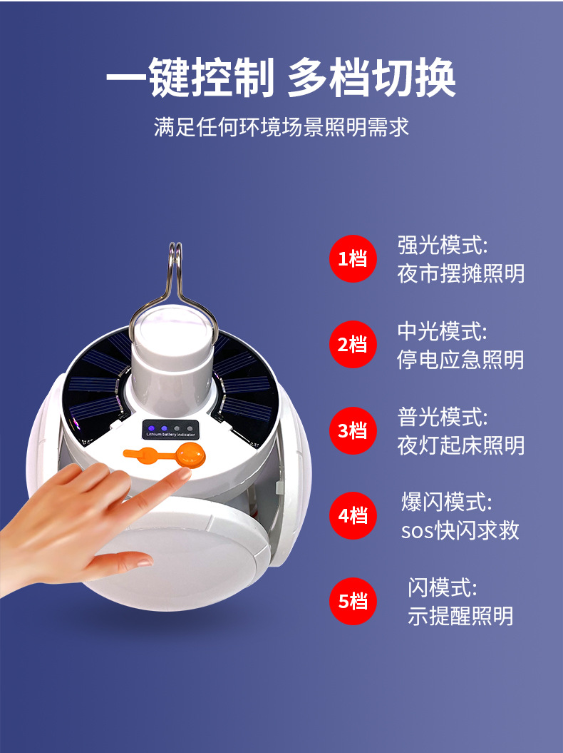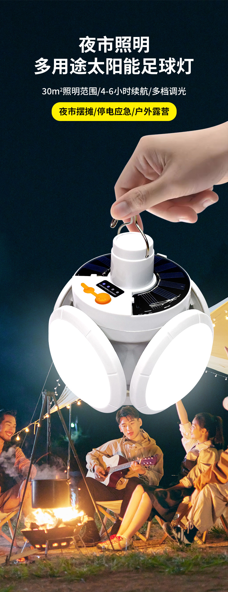 太阳能充电足球灯五面发光露营灯led充电灯夜市摆摊停电应急照