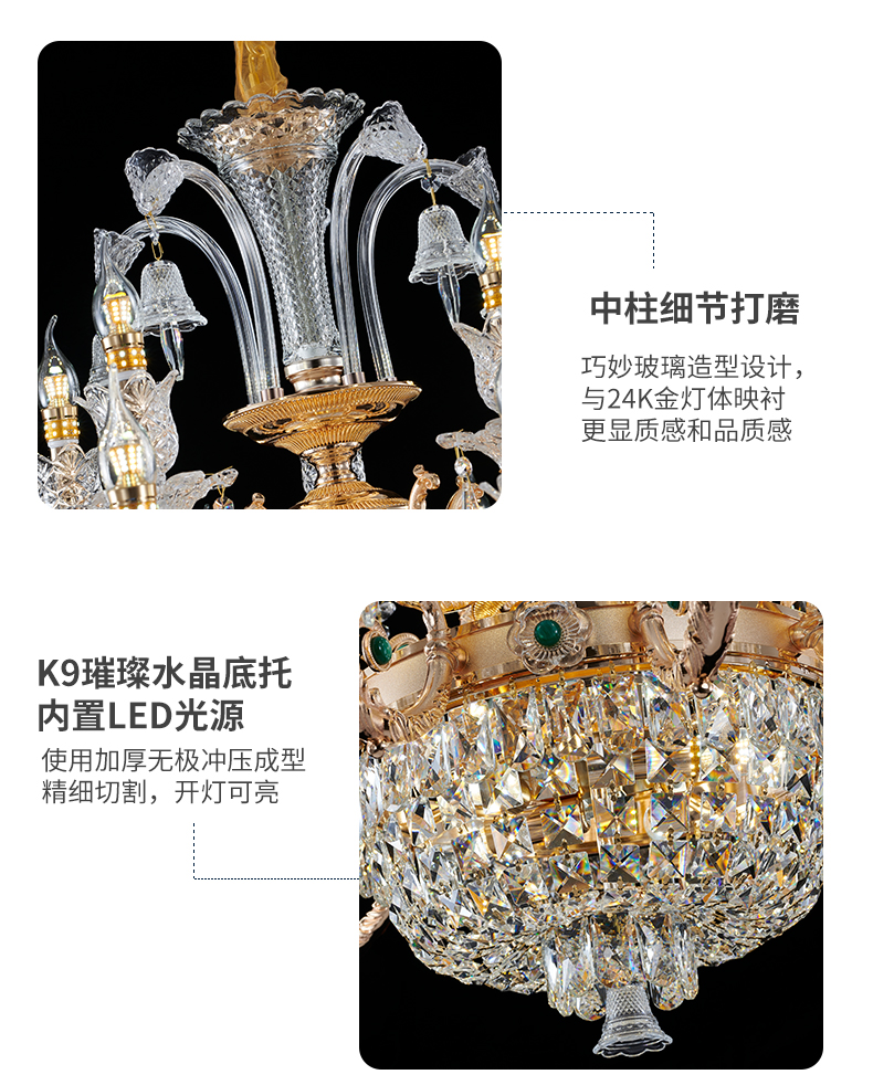 • 灯体材质 水晶、铁质、铝质、树脂、玻璃