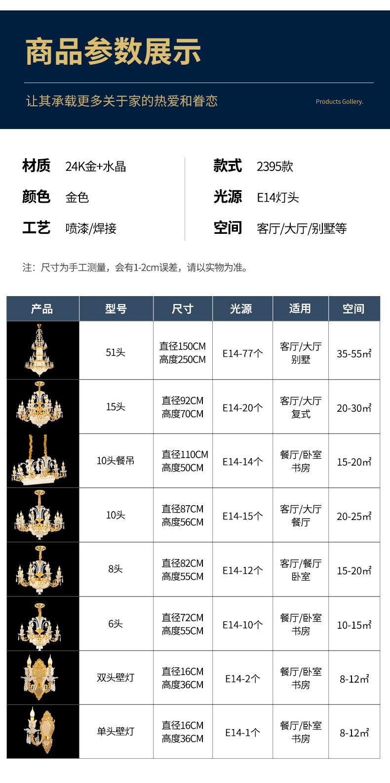 欧式轻奢法式客厅餐厅卧室别墅大吊灯
