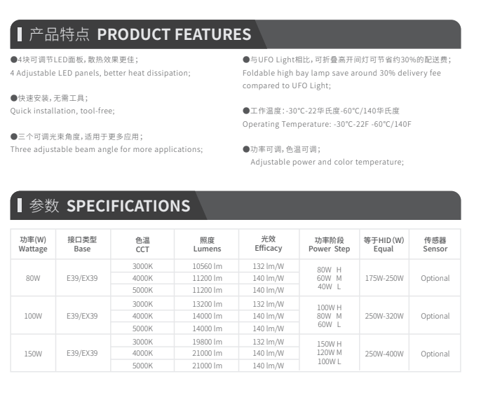 • 色温(k) 3201-3800K、3801-4200K、4201-5000K