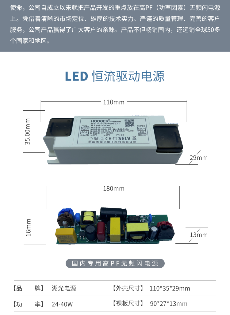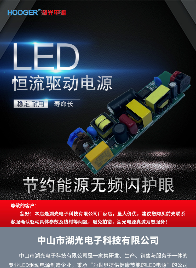 中山市湖光电子科技有限公司坐落于素有“世界灯都”美誉的广东·中山、成立于2011年,是一家集研发,生产,销售于一体的LED驱动电源及智能家居产品高新技术企业。公司拥有先进的6S和ISO管理体系,强大的研发团队和多种先进的AOI自动检测生产线,研发出上千种LED驱动电源及智能家居产品。大部分产品通过了全球各种认证,符合ROHS标准,并获得国家专利! 公司自从成立以来秉承为世界提供健康节能的LED电源为目标,专注于高PF无频闪认证电源研发与生产,2021年公司又新成立了 深圳市聪本智能科技有限公司,其产品以“简单、安全、稳定”为设计原则,以提高人们生活品质,推动智能家居普及化为目标, 引领您进入一个无需网络、无需App,去中心化的智能家居新时代! 旗舰产品有:室内、户外高PF无频闪认证LED电源全系列,智能家居产品提供从芯片、模块、PCBA、电源、软件到平台的一栈式服务,该系列产品连续多年市场占有率领先同行。销售网络覆盖国内外多个国家和地区。 我们始终秉承“客户至上”的理念,“以行业领先的技术及应用,为世界制造更节能环保的电源产品,保护地球家园。利用科技的力量,不断推动社会的发展和进步,提升人民的幸福感。”为使命; 公司愿景:成为一家受世人尊敬的,技术领先的世界级企业,成为全体员工物质与精神双丰收的幸福企业! 价值观:尊重、诚信、严谨、高效、团结、拼搏、责任、创新!