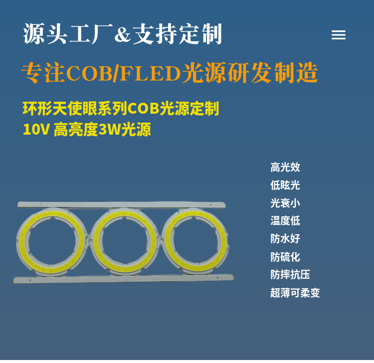 环形天使眼系列COB光源10V 高亮度 高集成度3W光源自行