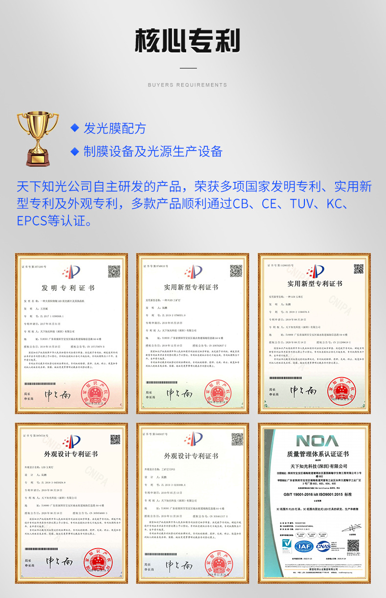 天下知光科技(深圳)有限公司创立于2017年4月,是一家专注于面光源照明产品的研发、生产、销售于一体的高科技有限公司,总部在深圳,在安徽阜阳设有生产基地。 公司技术研发始于2014年,目前拥有FLED(荧光膜LED光源)核心专利技术。历经多年,公司逐渐从单一的技术研发过渡到产品研发,再到现在的产业化平台的建立,引领点光源到面光源的一次重大变革。 公司拥有国内“天下知光”和国际“UniverLUX”两大自主品牌,并获多项专利和进入国内外市场的产品认证。其产品在道路照明、隧道照明、空港照明、工业照明、码头照明、园区照明、教育照明、防爆照明、场馆照明和其他特种照明等广泛的应用领域。FLED已成为满足国内外照明市场的全天候、全领域高科技领衔产品。 公司发展先后经历了几个阶段: 2017年4月成立天下知光科技(深圳)有限公司;2021年7月成立天下知光科技(安徽)有限公司;2023年3月成立天下知光科技(辽宁)有限公司;2023年5月成立天下知光低碳科技(山东)有限公司。2020年12月天下知光科技(深圳)有限公司被授予国家高新技术企业称号。 天下知光作为FLED技术的开创者,致力于推动半导体照明技术和产业的提升与发展,以技术研发为引领,以客户和市场应用为中心,以产品质量和专业服务为基石,“秉烛天下,笃实知光”!矢志不移地践行企业的使命——“创新之光,点亮未来”!