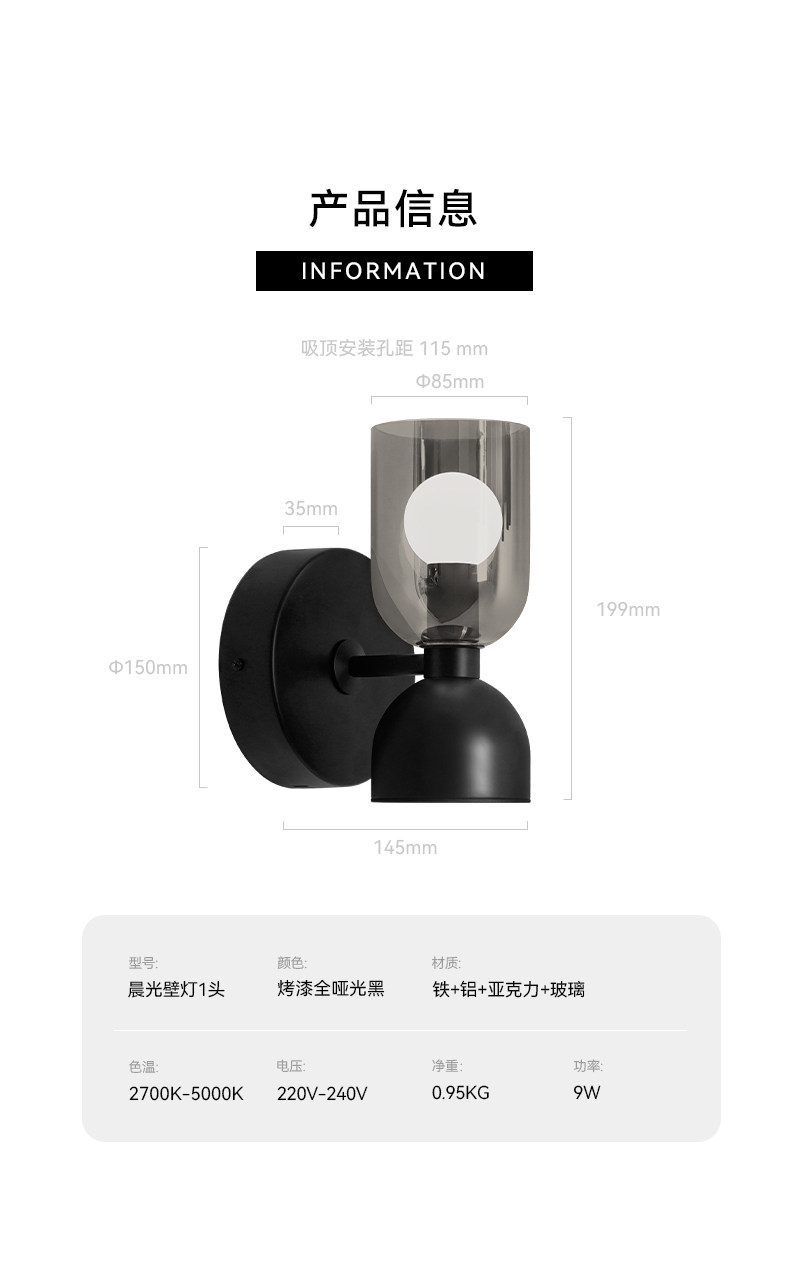 • 产品型号 晨光壁灯1头