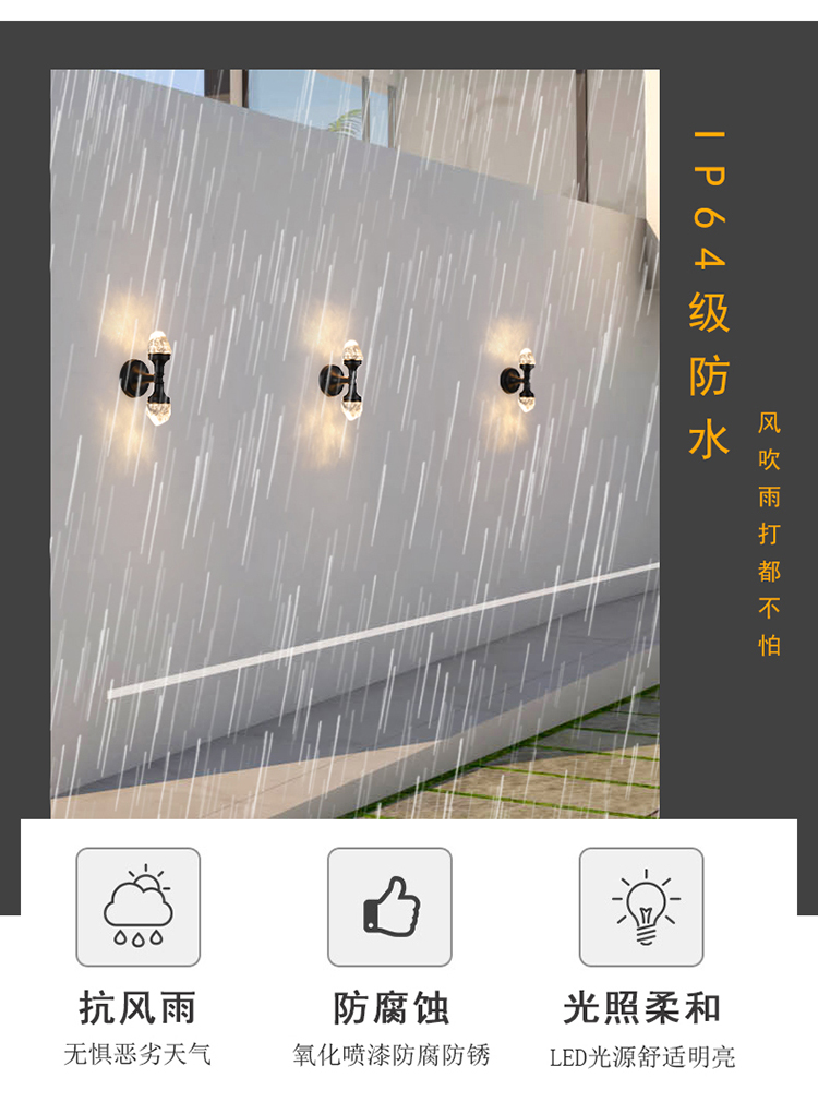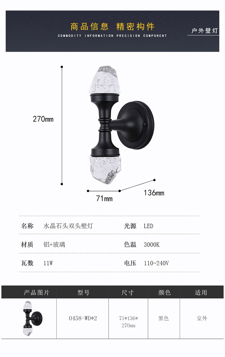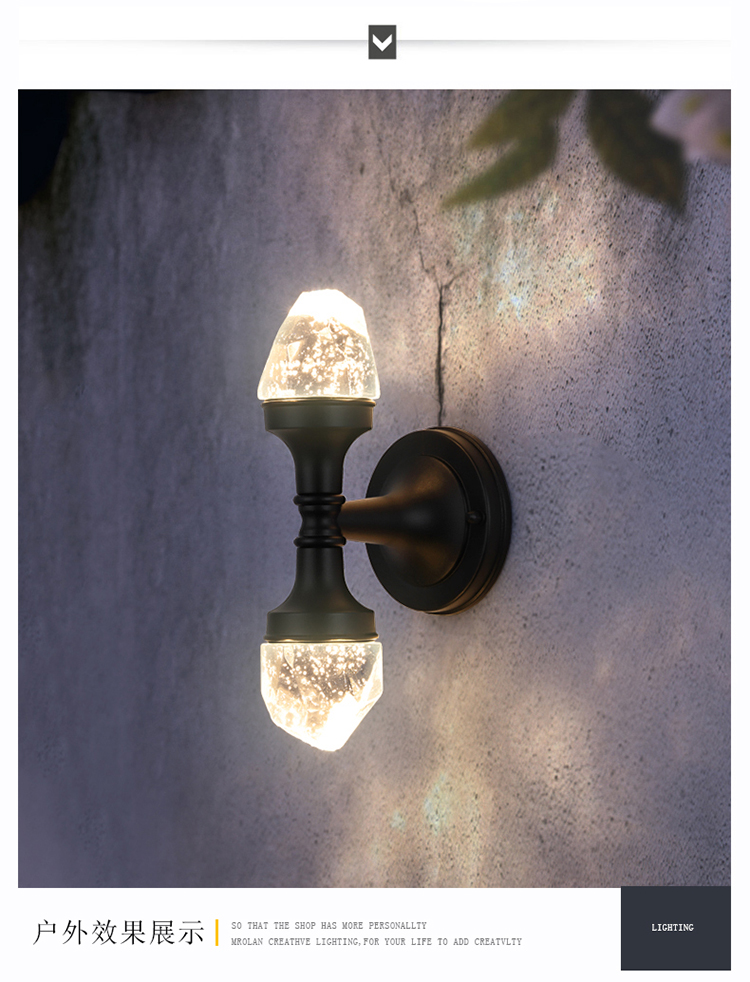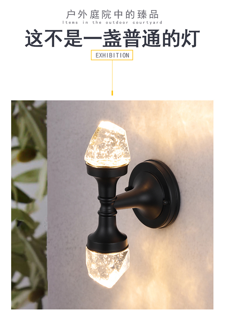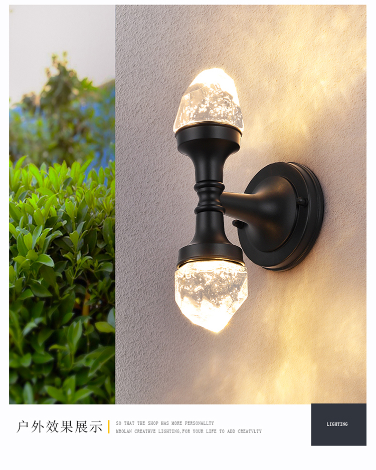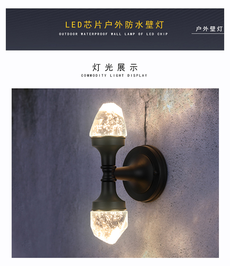 双头水晶壁灯阳台卧室床别墅庭院门外墙户外超亮防水壁灯
