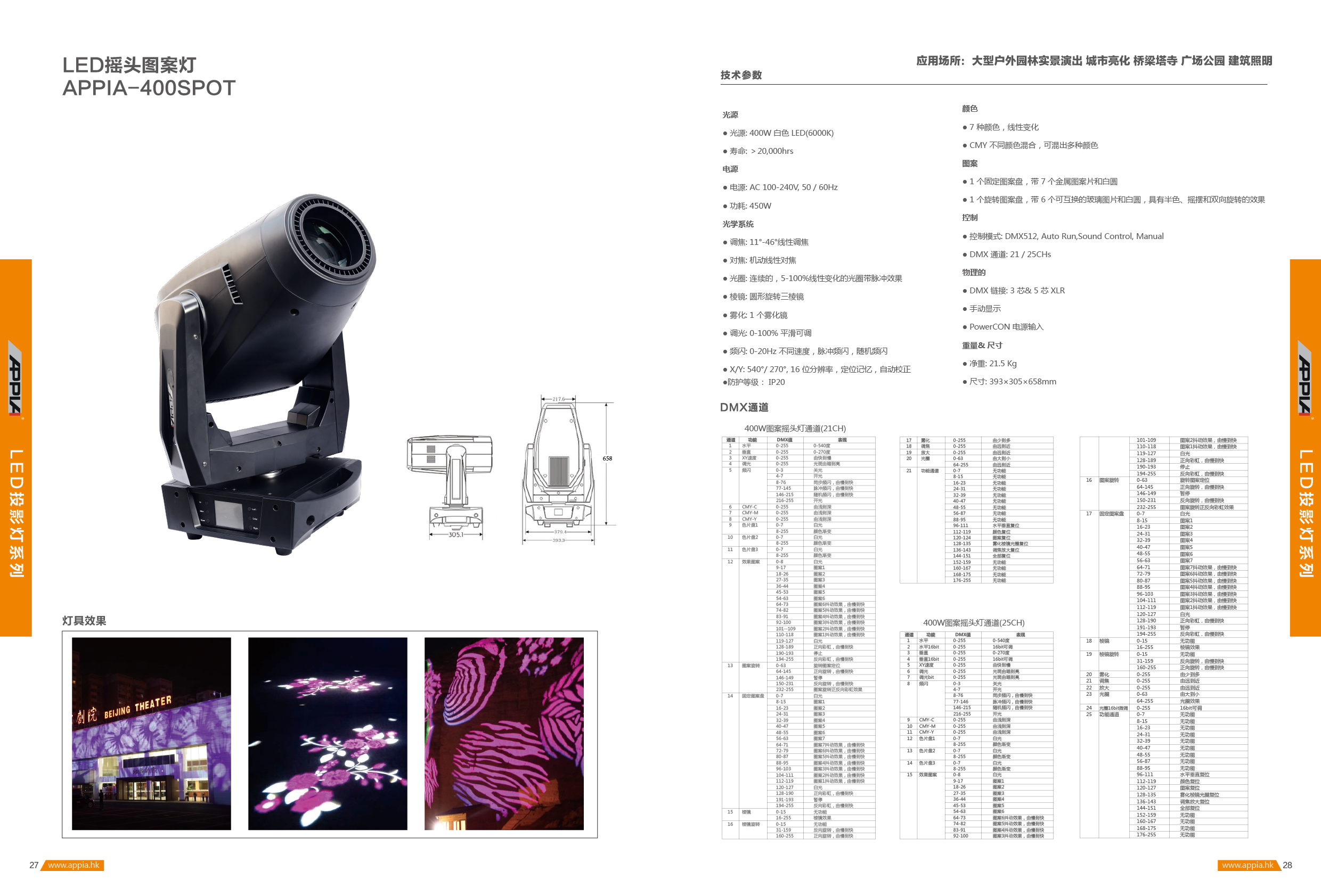 广州阿皮亚灯光设备有限公司是一家由阿皮亚国际(香港)有限公司授权成立的一家集户内外灯光产品,设计、研发、生产、销售服务于一体的高科名营企业。专业从事户内外舞台灯光、景观照明、城市亮化、园林实景演出灯具的研发生产、系统集成,是国内唯一一家将舞台灯光导入户外化的高科技股份企业。 2015年广东阿皮亚企业,通过互联网+,平台战略构建,产业模式创造,产业链价值重组等方式,全面导入国际先进管理理念和营销理念,引进先进的制造设备,不断完善创新自主产品,现以形成了产、学、研于一体的科研体系和产业链体系,奠定了在行业中的技术领先地位,在户内外灯光影视行业产生重要影响。 现公司规划为三大中心、一个事业部、一个实验室,产品研发中心、生产制造中心、营销中心。演出创意策划事业部。数字舞台设计与服务(文化部重点实验室)。阿皮亚企业近年来不断至力于推动绿色环保节能产品,在保持优势产品基础之上,大力推广LED产品,已被国内外众多知名项目所应用。持续不断的研发能力及创新意识,卓越的产品性能与自我价值,使其在业内赢得了良好的声誉。 展望未来,阿皮亚企业将以“着力打造户内外灯光第一品牌”为企业长远发展目标,将着力打造光与建筑的融合,光与环境的和谐,光与舞台、人物的完美交融为已任,逐渐提升企业的综合经营能力,建立自主知识产权的技术优势,不断完善营销和售后服务网络体系,发展成为最具影响力的国际化企业,成为户内外灯具行业的首选品牌!