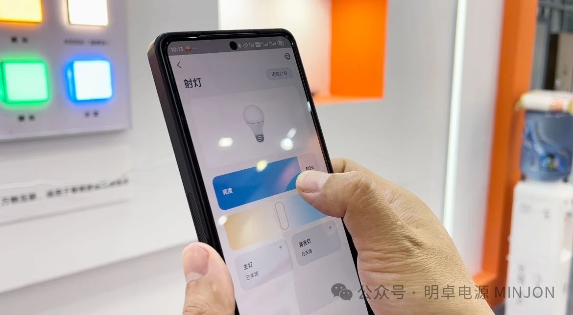 展会第二天,明卓电源展位依旧人气爆棚,参观、咨询的客户络绎不绝。除了深入浅出的讲解,现场销售人员还对不少产品进行了现场演示,这款 MD系列智能调光电源,明卓研发团队也做了创新突破。