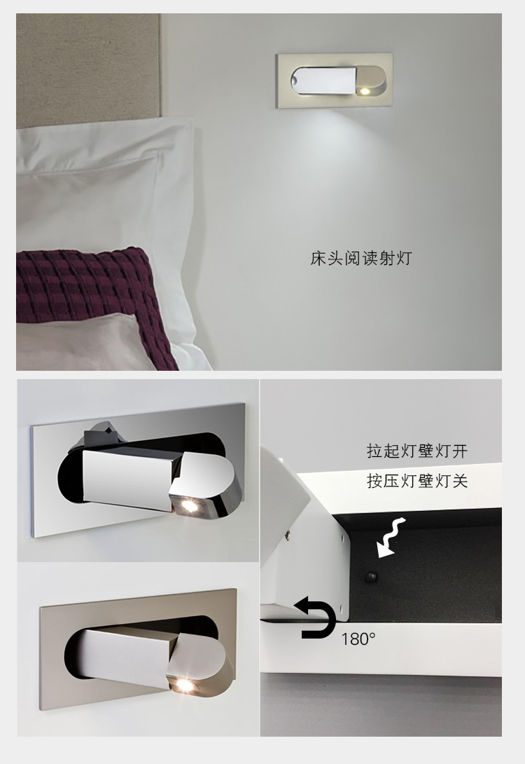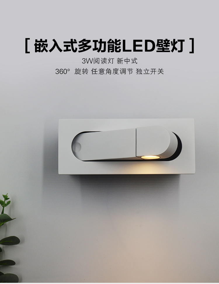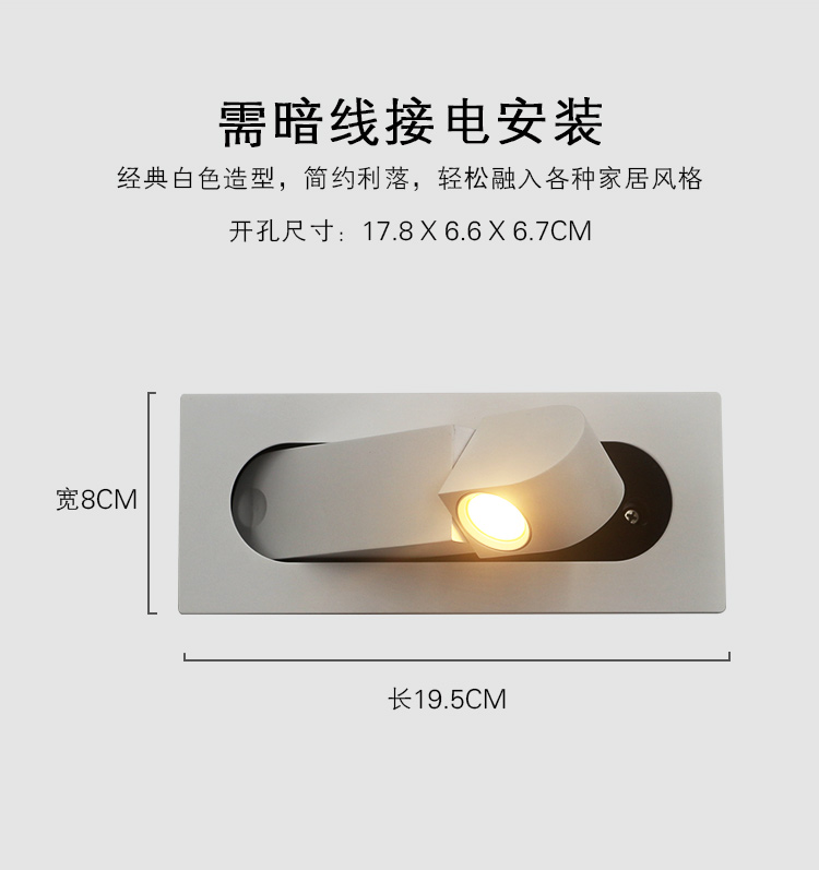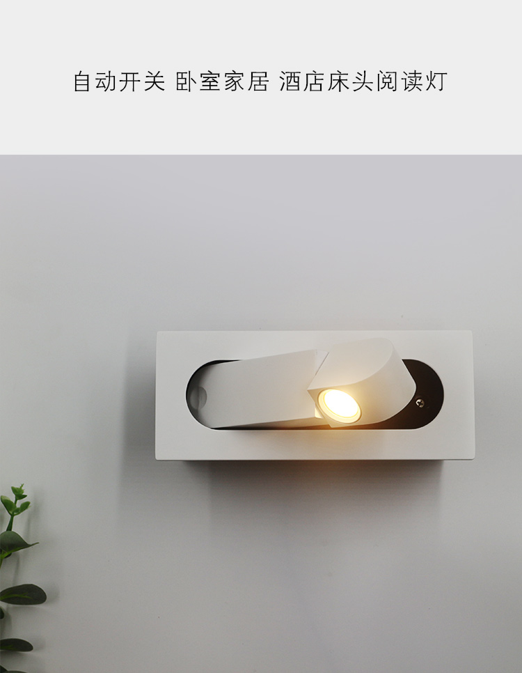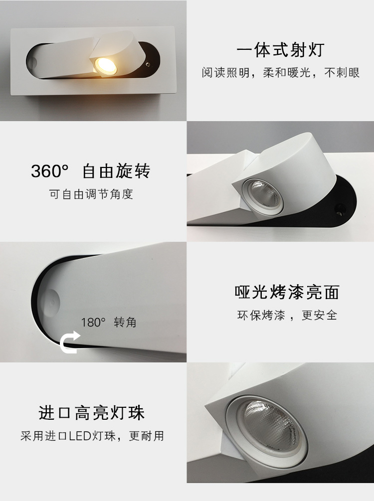 创意酒店卧室床头手机USB充电LED阅读小壁灯带开关方形3W聚光射灯