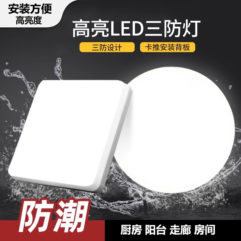 LED三防吸顶灯超薄圆形卫生间浴室阳台卧室厨卫灯过道走廊