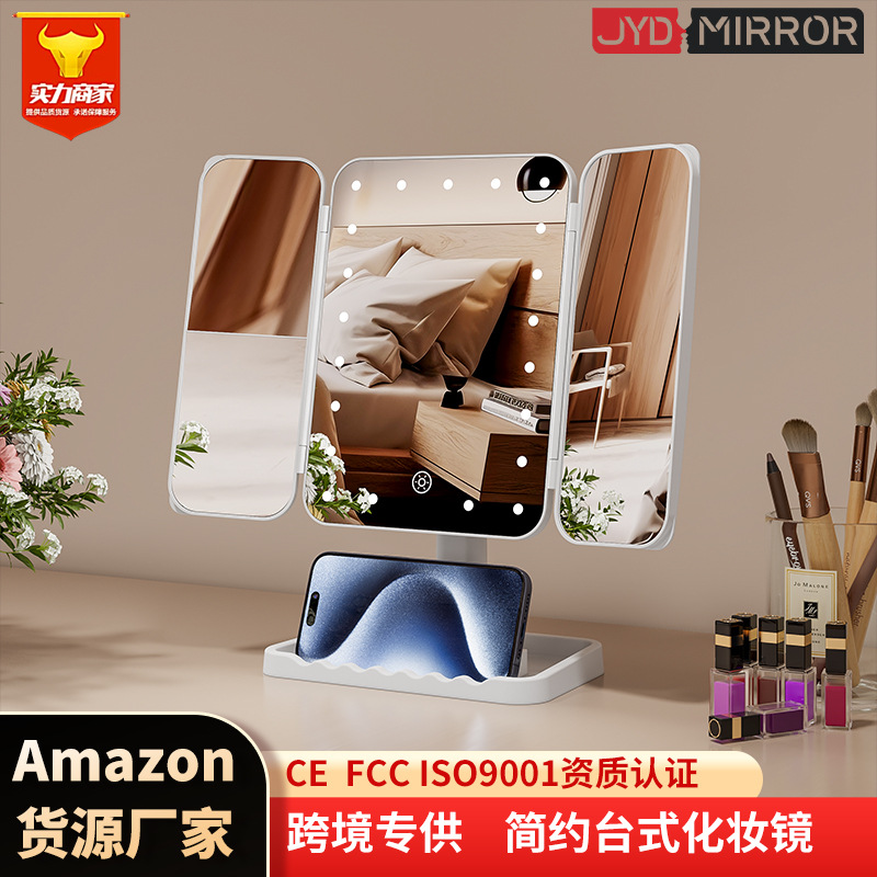 三面折叠LED化妆镜三色补光触摸感应美妆镜充电180度旋转化