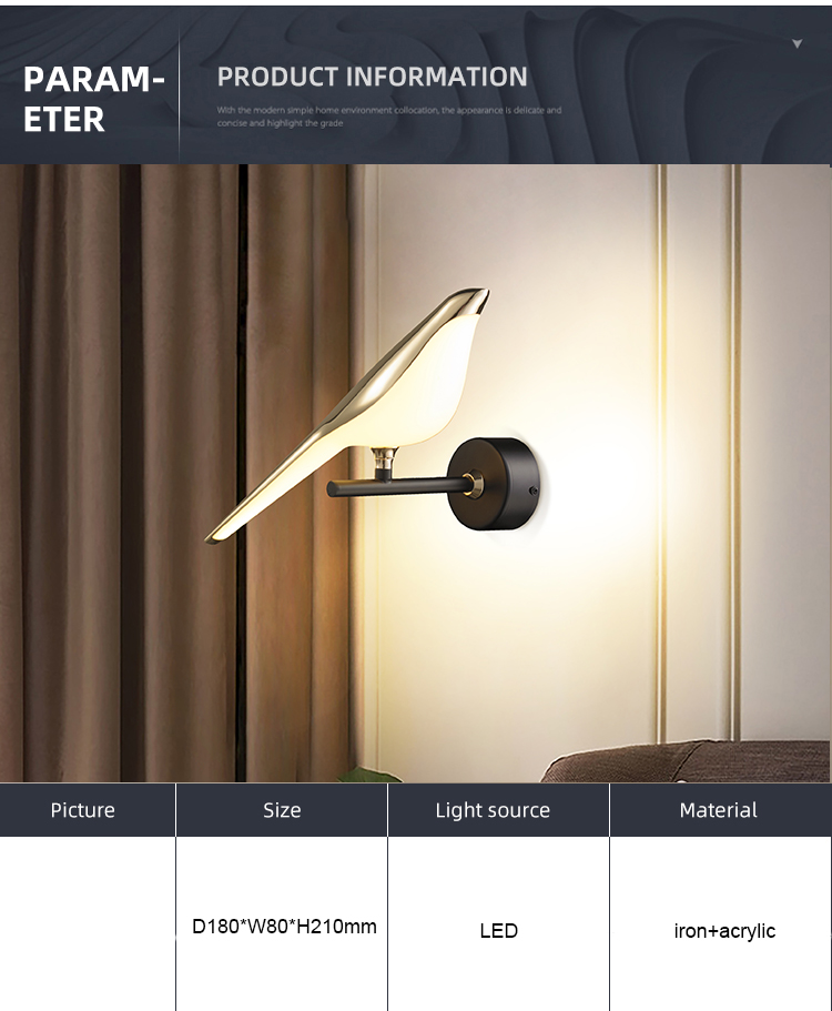 现代风格酒店房间壁灯家居装饰壁灯卧室床头小鸟壁灯