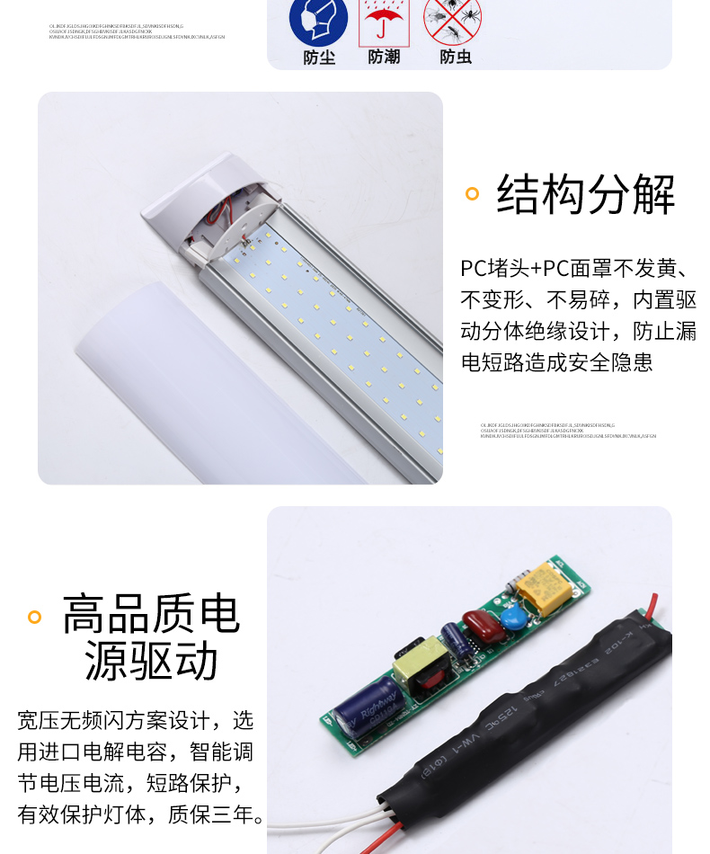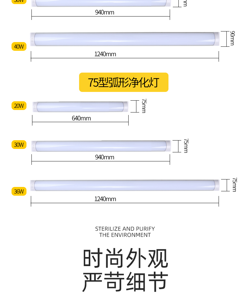 1200mm40W/600mm20W一体超薄弧形洁净净化灯