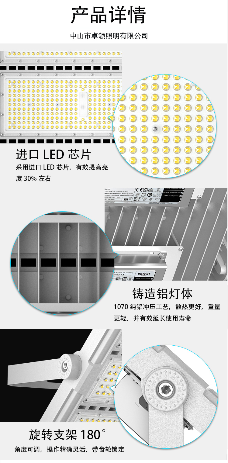 中山市卓领照明有限公司位于中国照明之都古镇。自2013年以来,我们一直专注于led路灯、高杆灯、隧道灯、太阳能灯等。我们是一家集应用、开发、生产、销售和服务于一体的高科技、科技型企业。产品应用于道路照明、工业照明、室外建筑装饰和市政工程、节能改造等。卓领照明已通过ISO9001/ISO14001/OHSAS45001管理体系,拥有先进的压铸车间、灯具检测、配光、老化设备、测试实验室等。我们的产品获得了106多项认证,包括CE、CB、RoHS、FCC、TUV、必维国际检验集团、莱茵等权威部门的质量审核认证和测试。我们的主要市场在北美、南美、东南亚……超过1712家合作伙伴见证了这一点。与我们合作,我将协助您成为当地led灯的领导者。