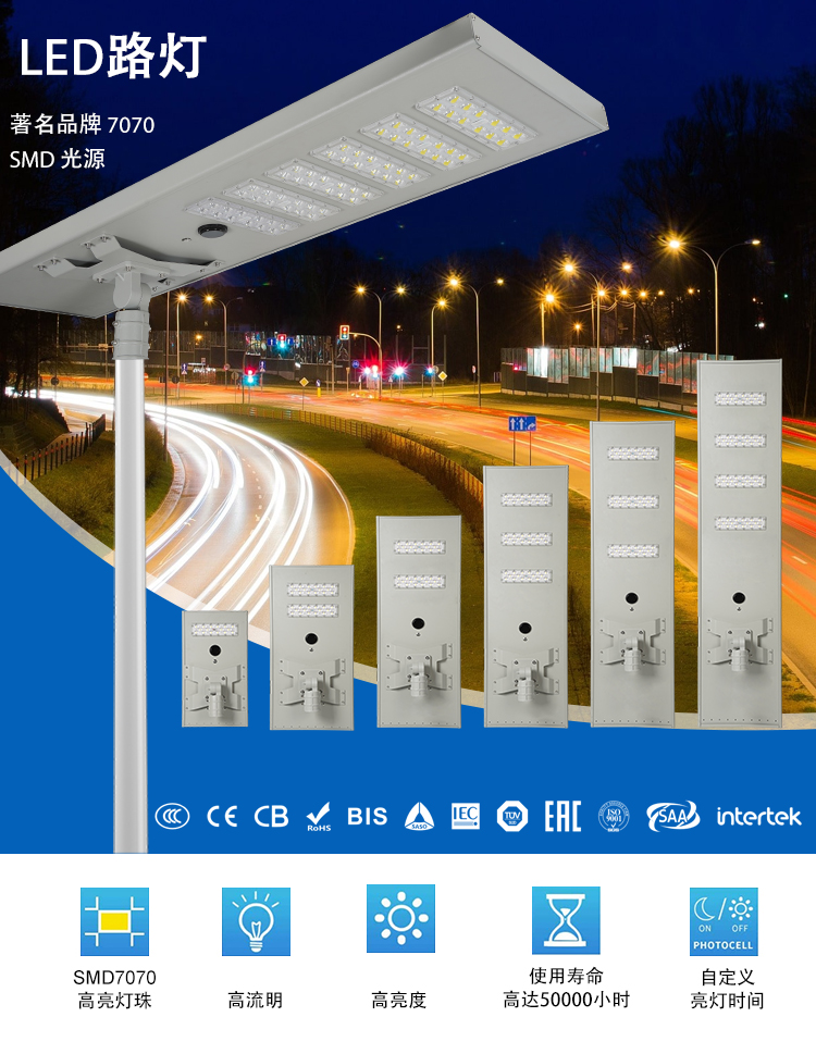 户外照明Ip65防水路灯工程集成一体太阳能发光二极管路灯