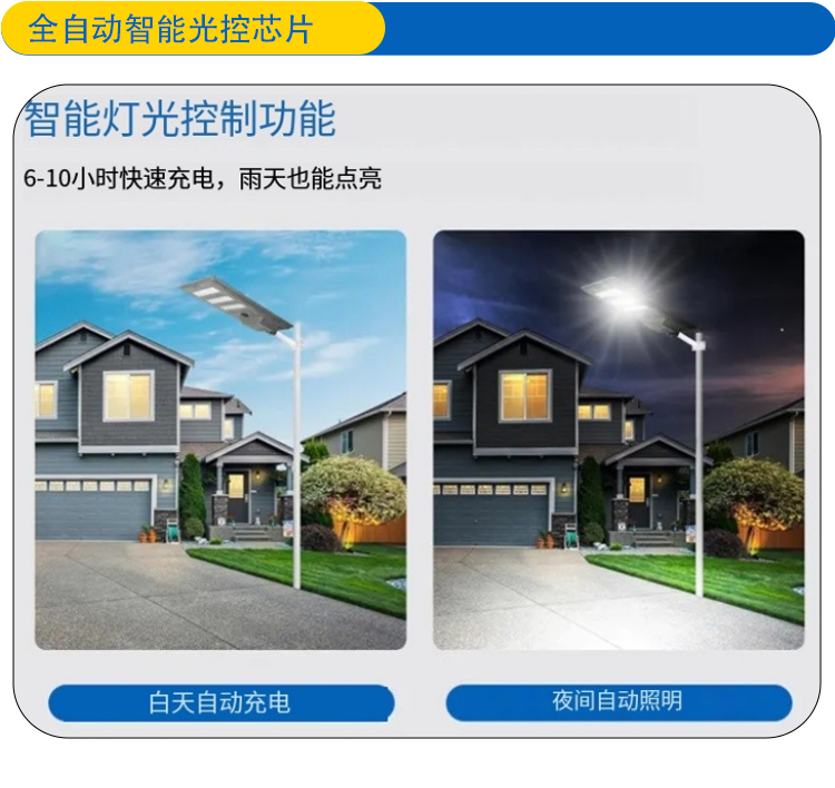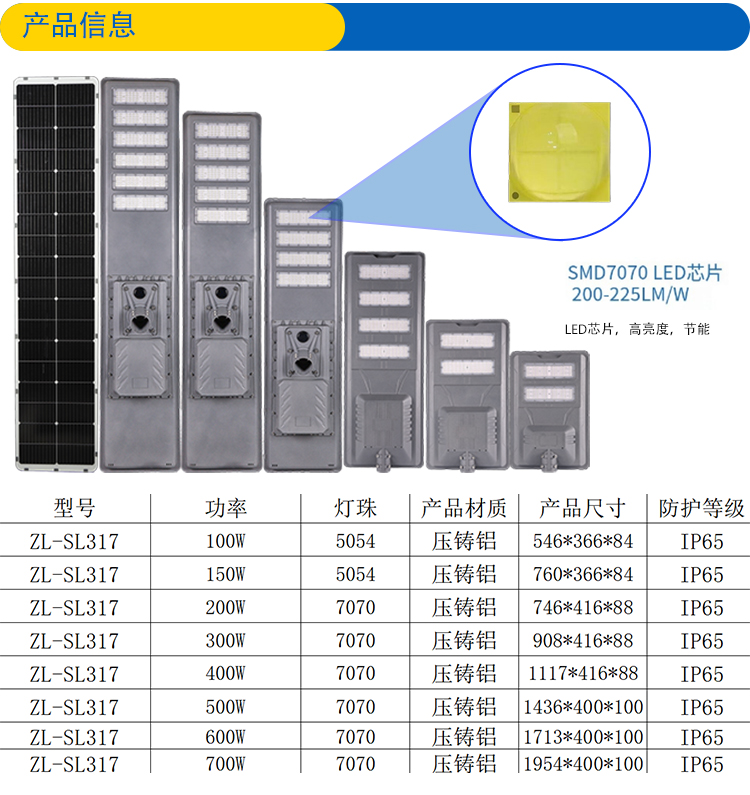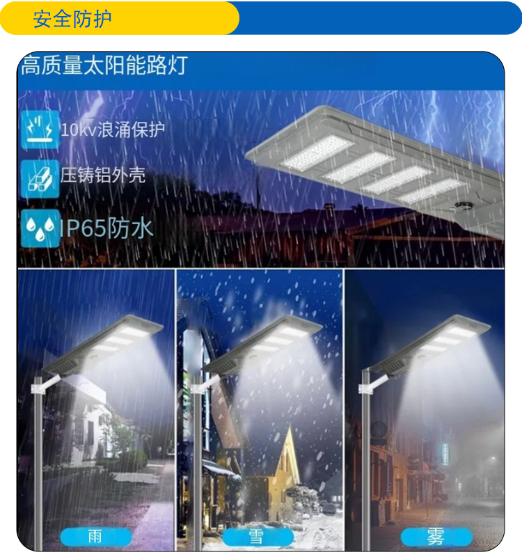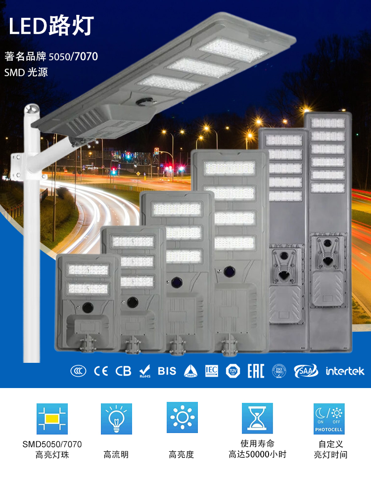 高流明室外路灯压铸铝运动传感器集成Led一体太阳能路灯