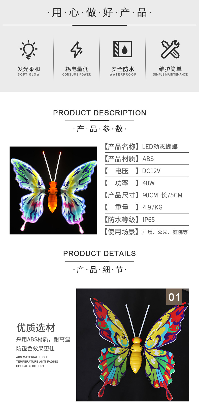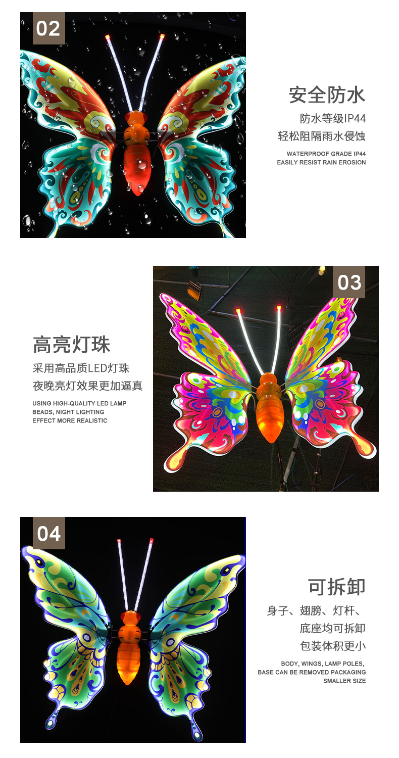 LED蝴蝶灯90cm仿真蝴蝶发光景观灯庭院灯动态公园插地灯