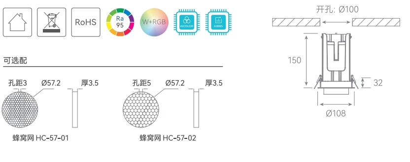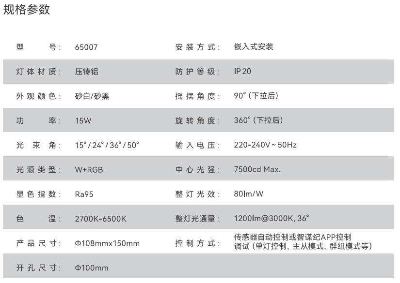 • 光源可调性 色温调节、光束角调节