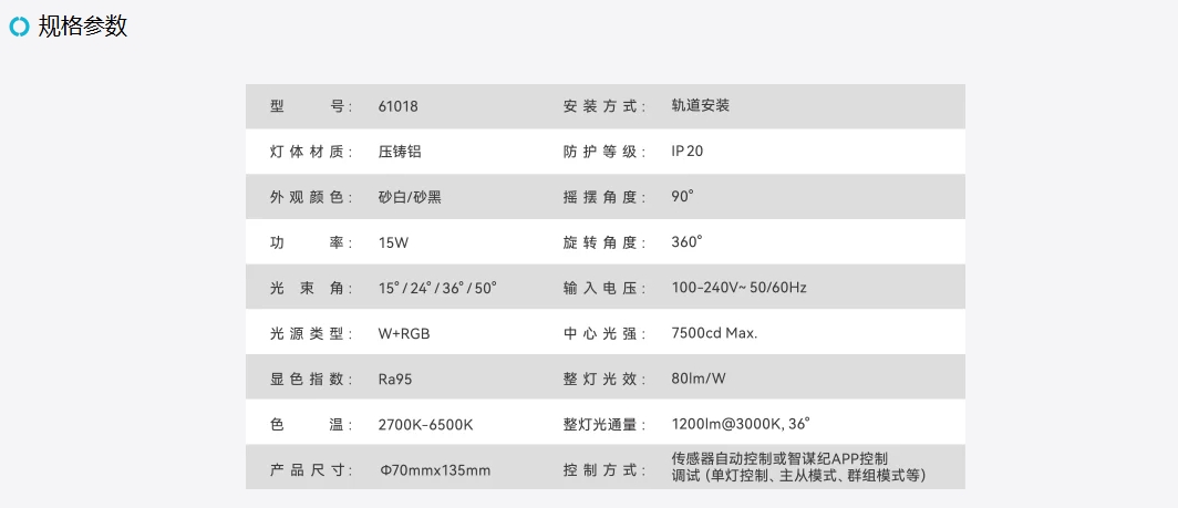 • 可调性 色温调节、光束角调节