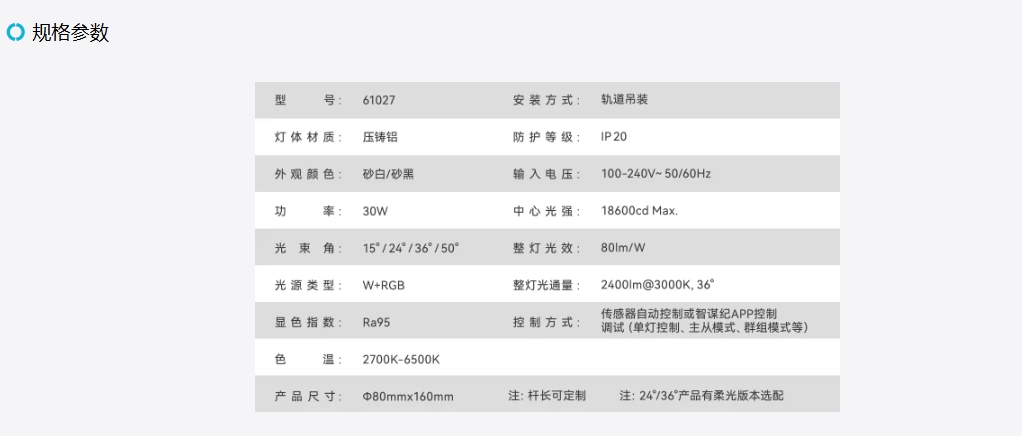 理想光Meta2单传感器版导轨吊杆射灯61027(30W)