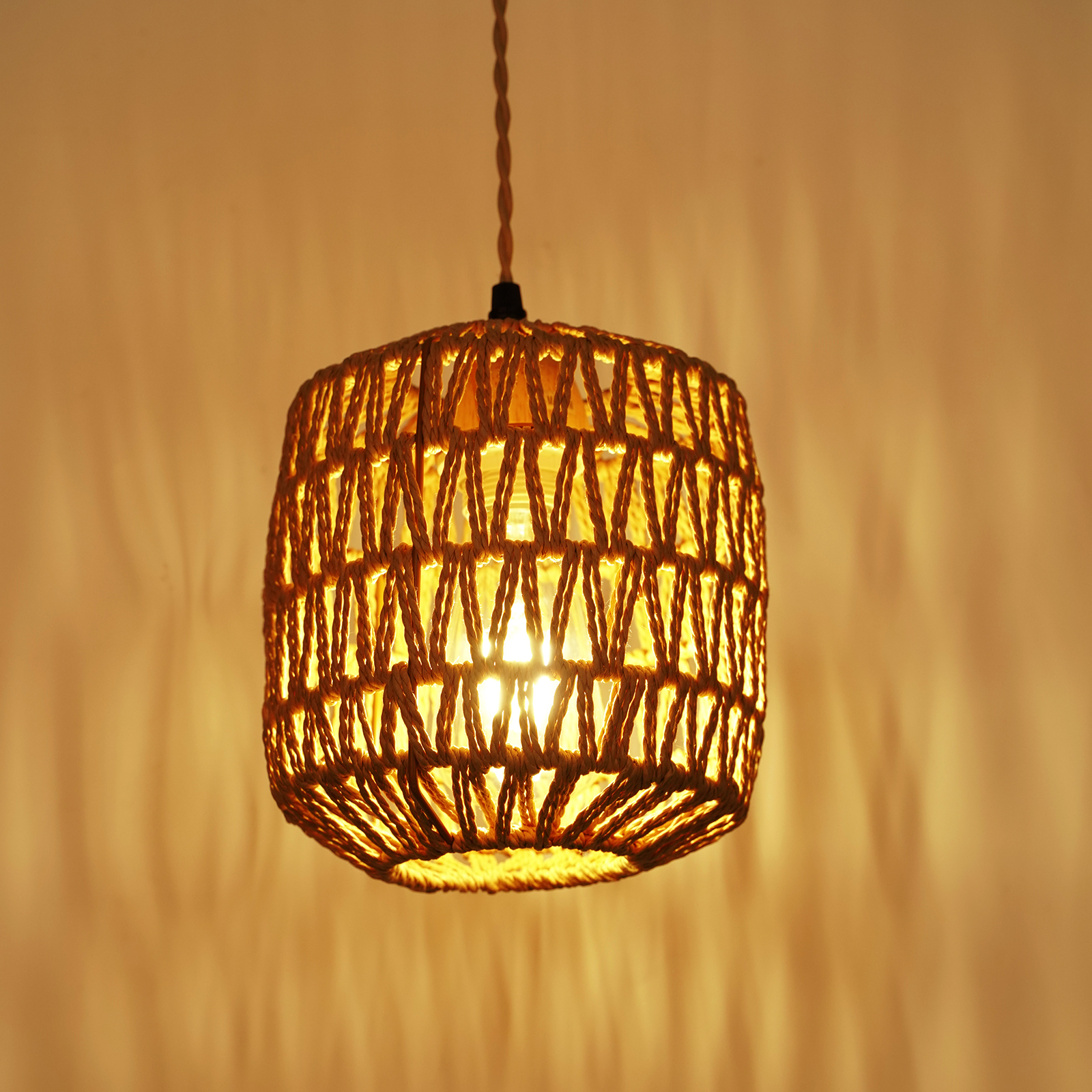 跨境床头壁灯美式手工编织纸绳LED灯室内玄关灯按钮开关麻绳吊
