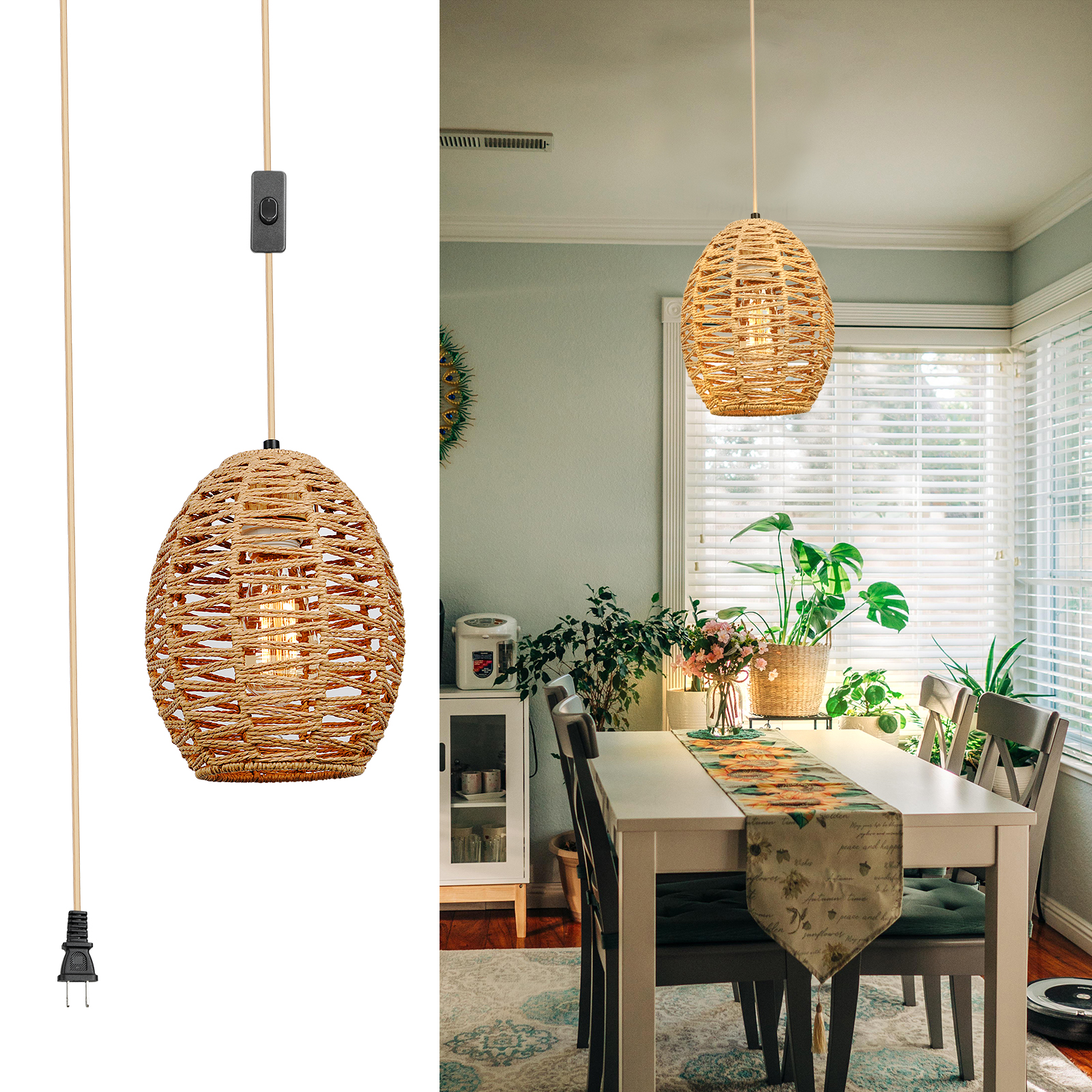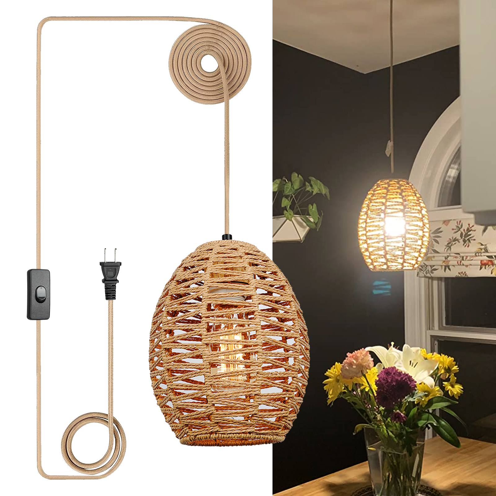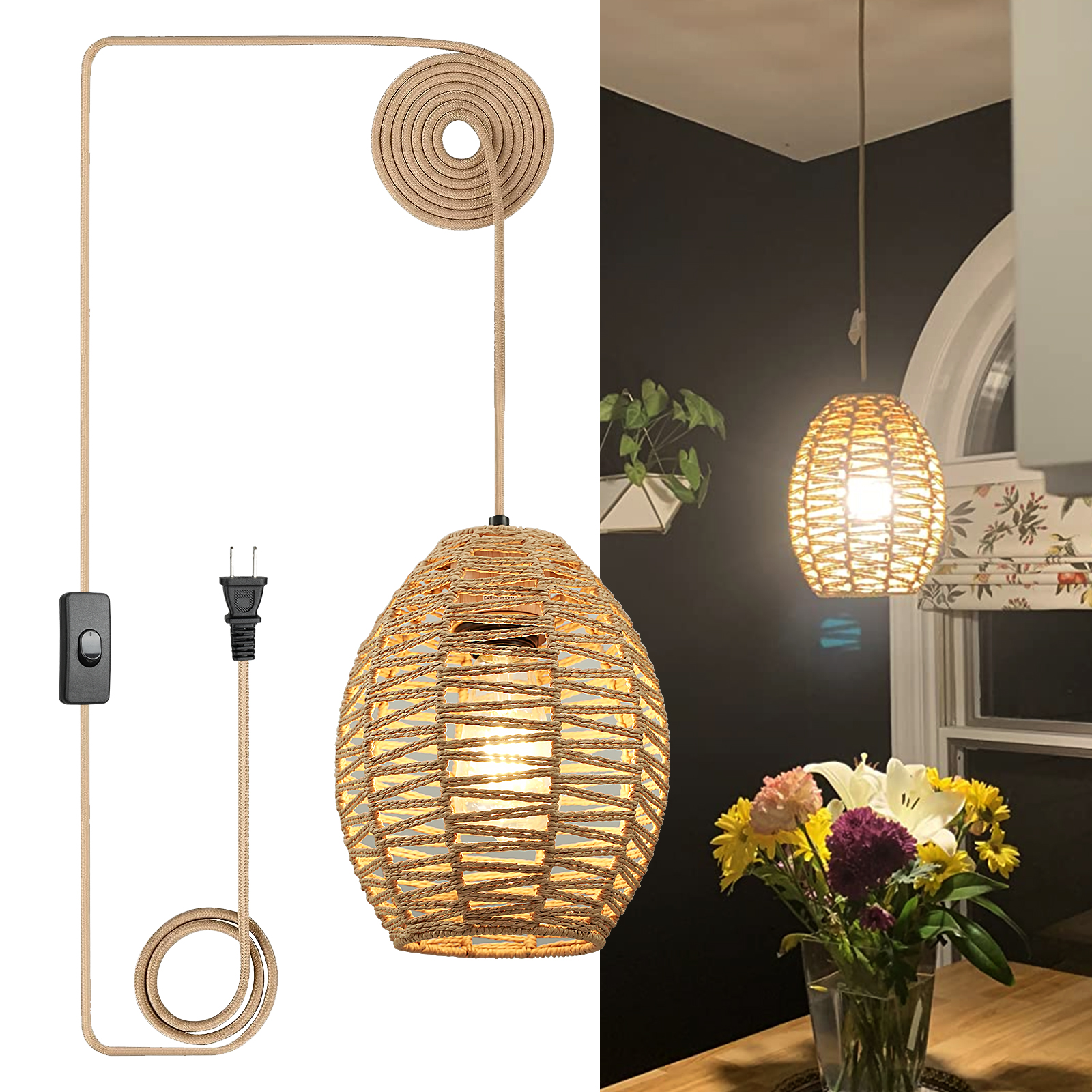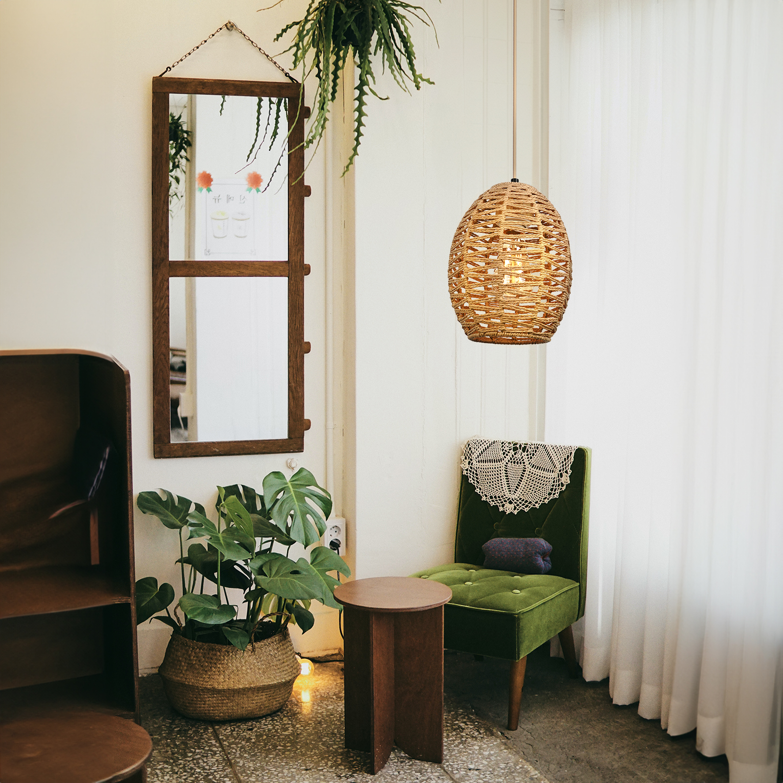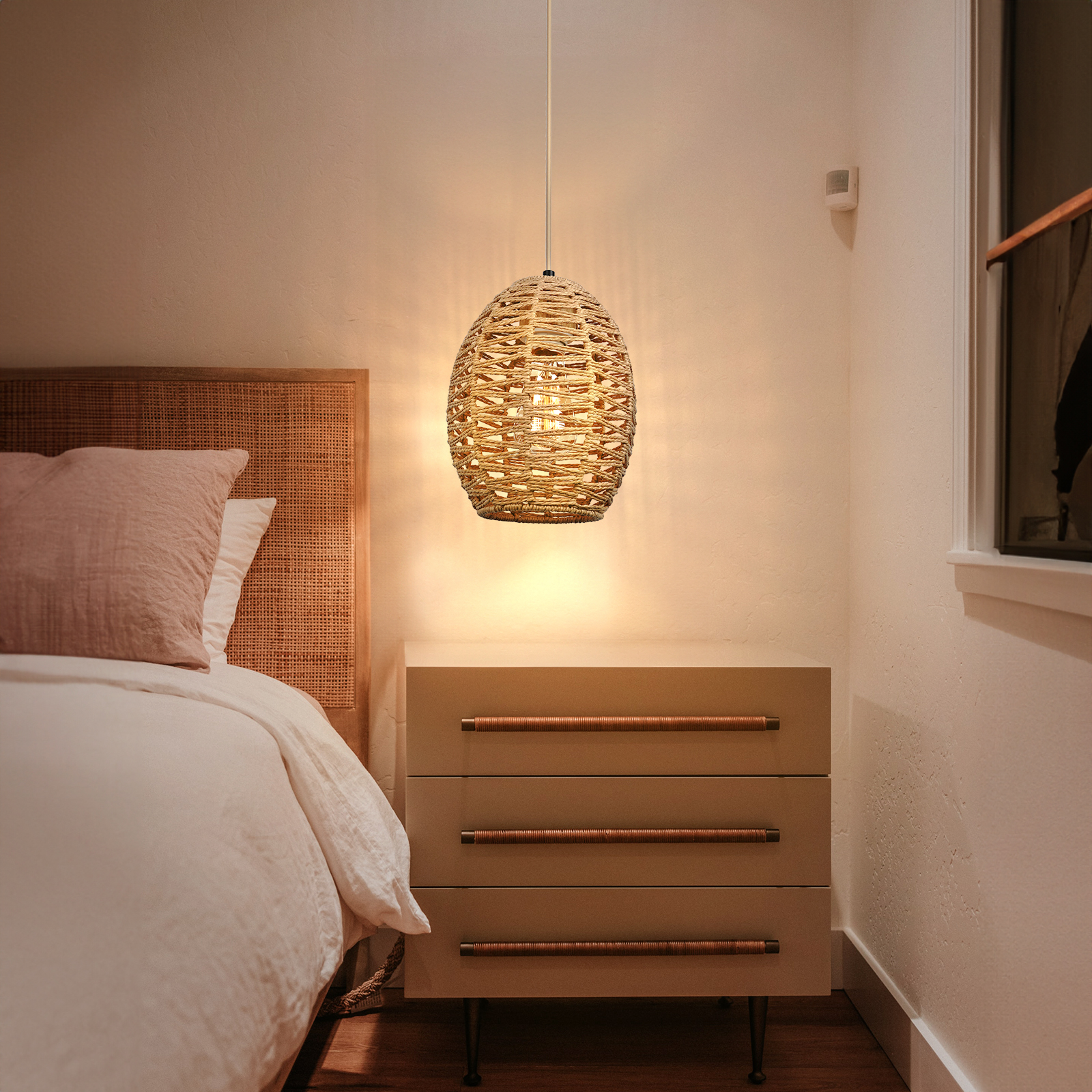 亚马逊吊灯民宿复古灯装饰天然纤维灯手工藤编跨境热卖餐厅灯吊灯
