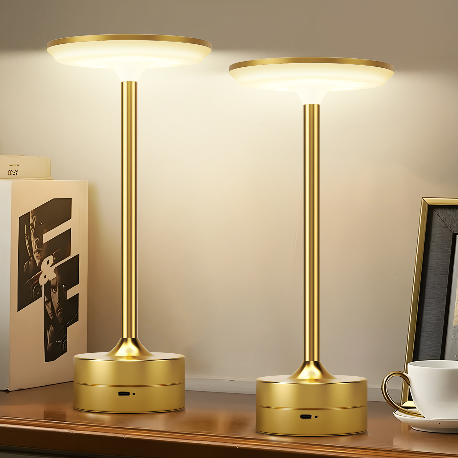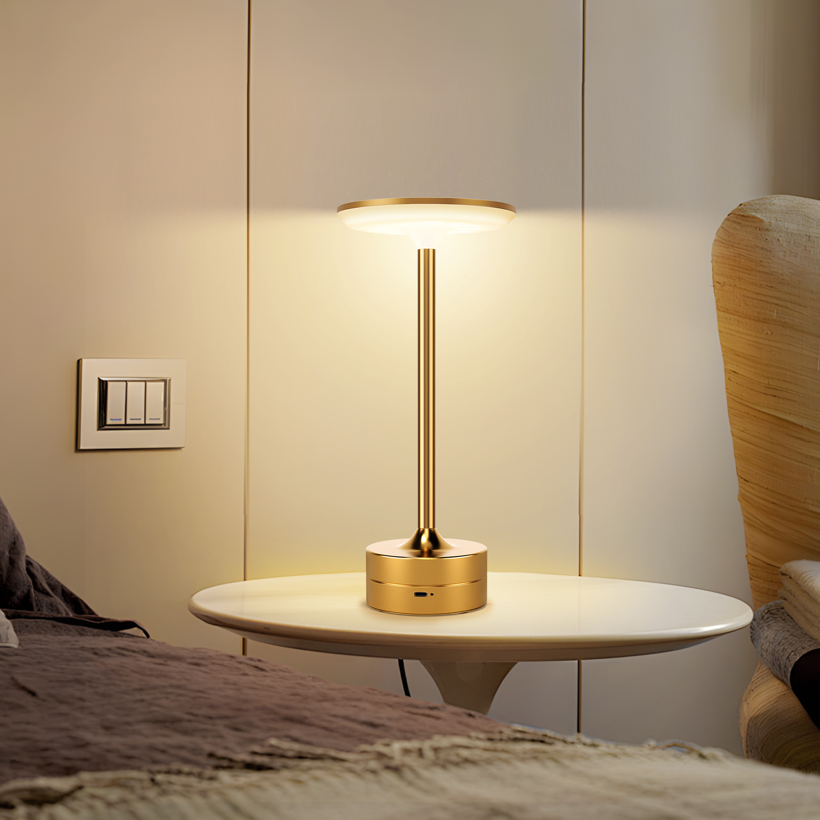 新款轻奢充电台灯卧室床头灯咖啡厅桌灯LED氛围灯触摸感应小台