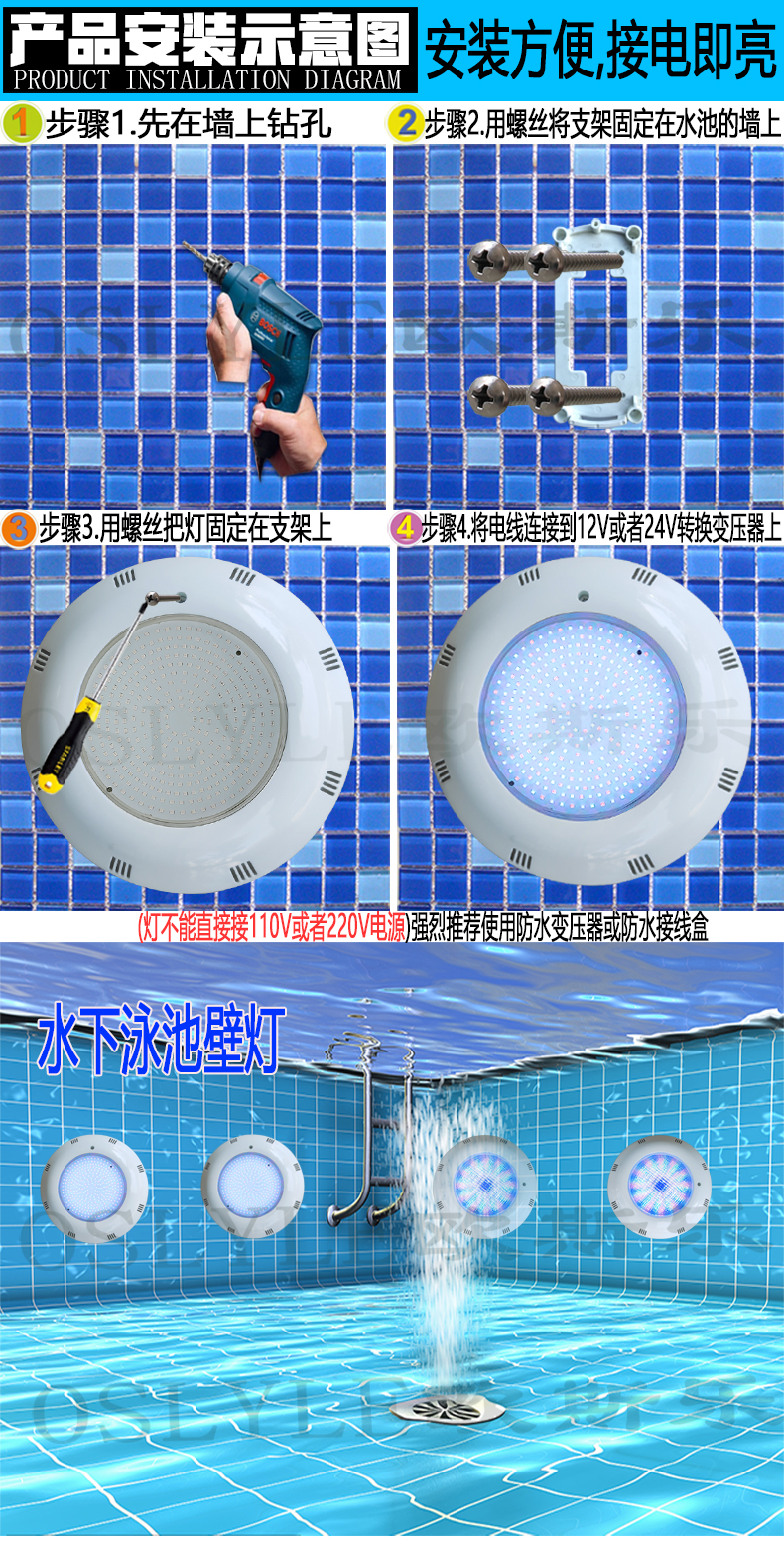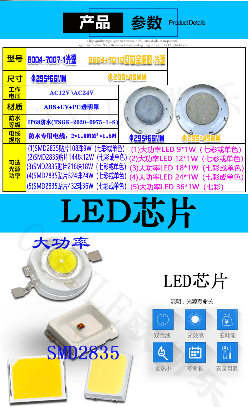 跨境泳池灯12V爱克led水底灯par56挂壁式游泳池灯景观