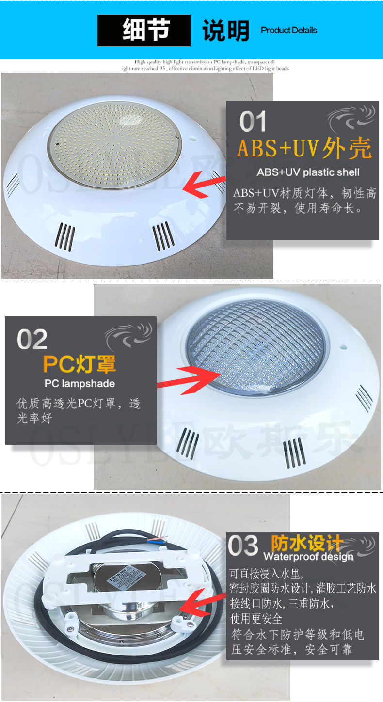 中山市欧斯乐灯饰有限公司是一家专业生产水下LED灯的厂家。我们拥有先进的技术面貌,先进的设备和工艺。我们还通过了ROHS, IP68, CE, FCC。通过iso9001、ISO 2000体系认证。我们专业从事各种水下LED灯的生产已有十多年的历史。产品包括壁挂式不锈钢挂灯,塑料,全密封,PAR杯和LED灯。光源效果,多色,单色,内部控制,渐变,外部控制DMX512,同步彩色,关机模式控制,四键,六键,十八键单对一遥控器和彩色效果可选,广泛应用于游泳池。喷泉水池、景观照明、别墅泳池、别墅泳池、花园景观、家庭水族馆等。例如:塑料农场。我们有8台注塑机生产塑料零件和外壳。拥有3条流水线生产产品,日产量1500- 2000条。我们的QC对所有产品进行在线检验。主要市场是俄罗斯。美国、英国、澳大利亚、德国等等。我们曾与Bright star,Ledis LTD.合作。我们非常重视质量控制,在工厂有严格的质量控制体系。覆盖材料供应评估,来料检验。评估分类和仓库保管以及生产质量控制。完善的生产工艺,先进的制造技术,严格的检验手段和良好的服务在客户中享有很高的声誉。如果您对我们的产品感兴趣,欢迎您访问我们的网站和我们的阿里巴巴网站:www。在您方便的时间获取更多详细信息。如果你有任何问题,请不要犹豫告诉我们。我们将尽力为您服务。