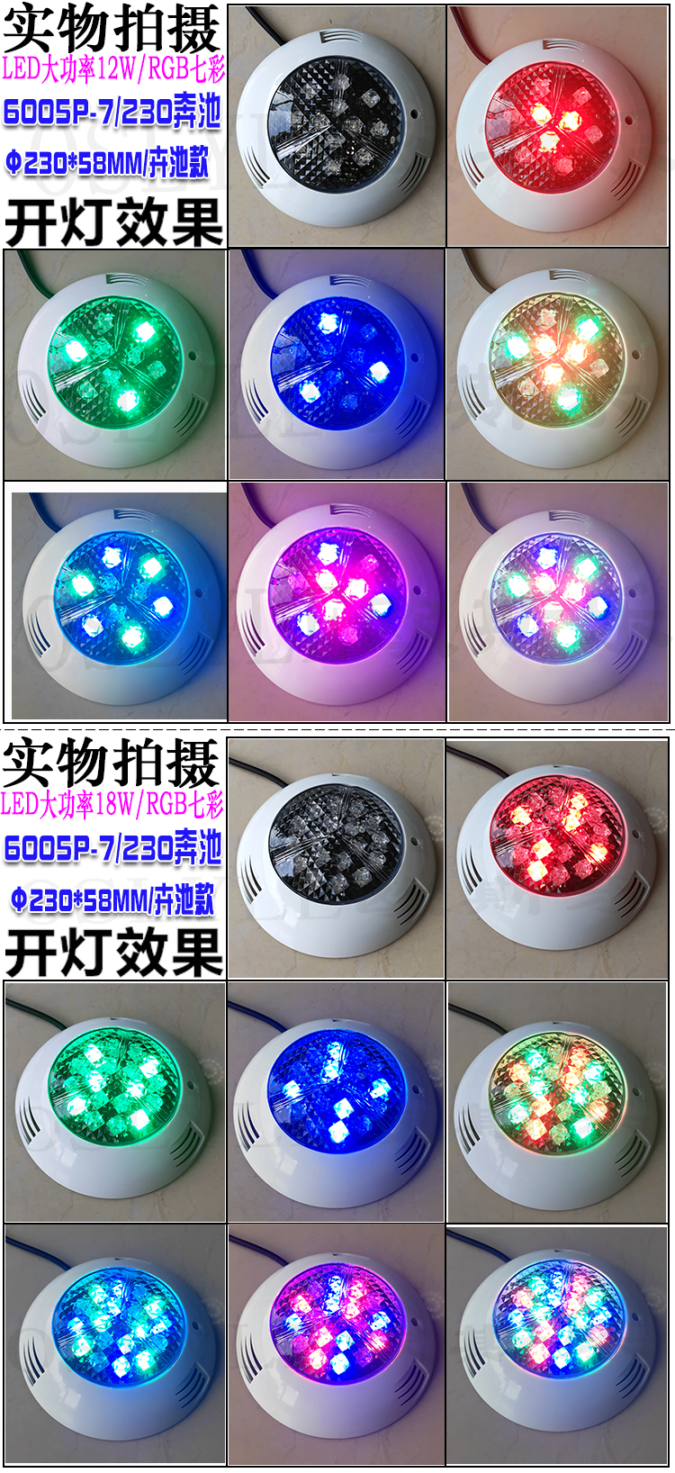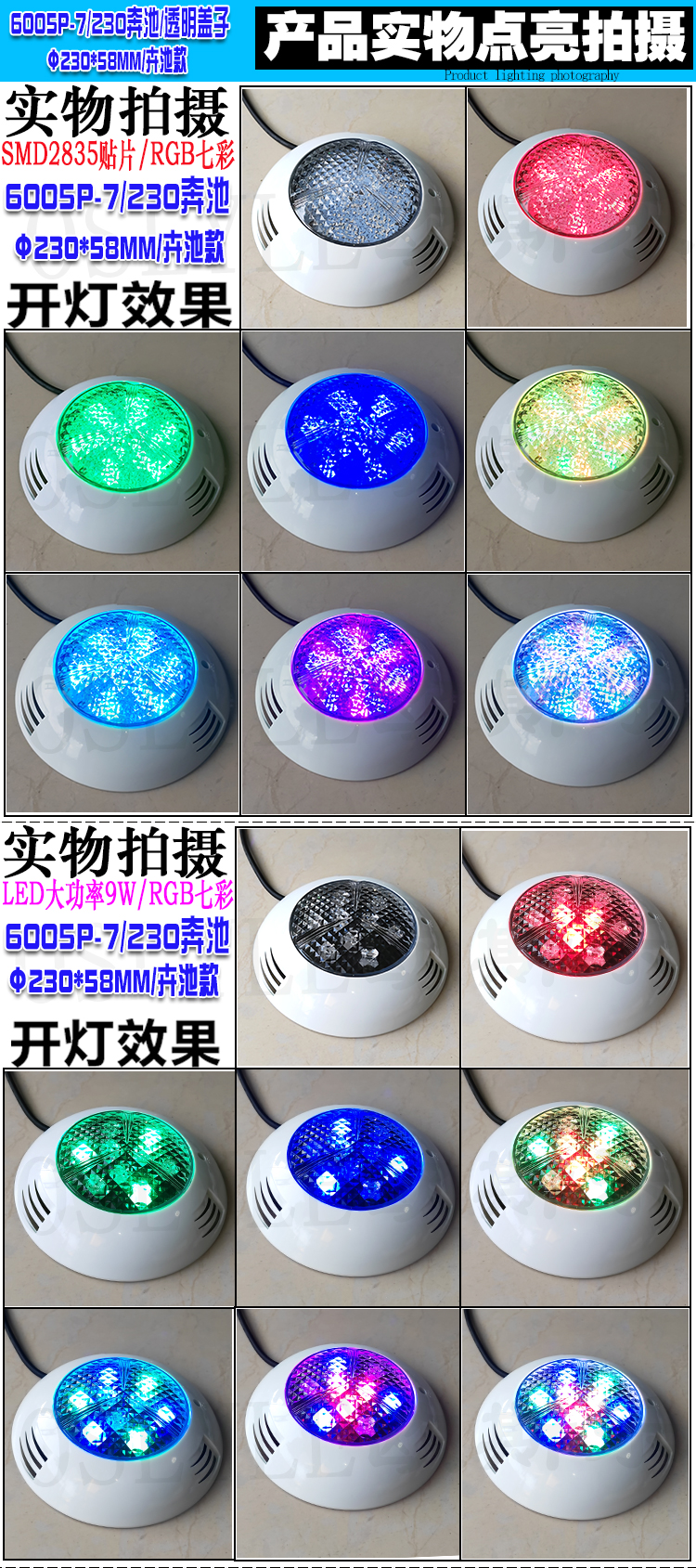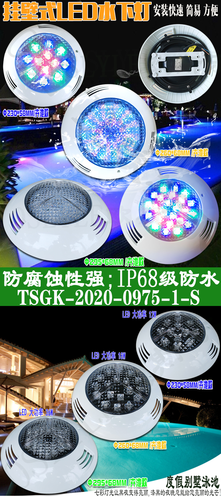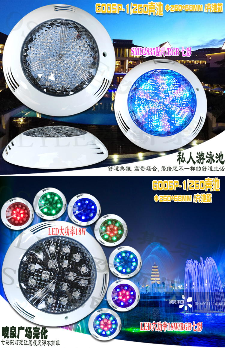 跨境 led泳池灯挂壁式奔驰款塑料挂灯12V七彩遥控水下水底