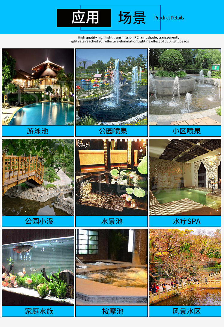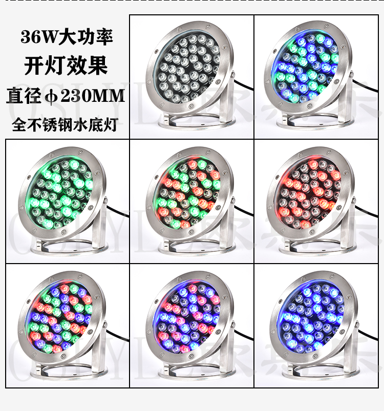 LED水底灯低压12v潜水族水池泳池灯七彩室外水下射灯音乐喷
