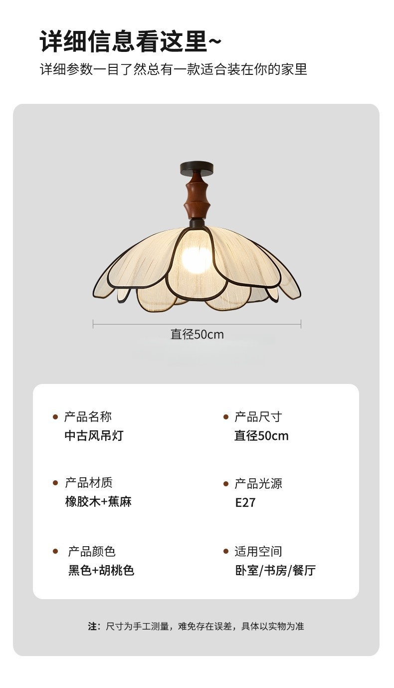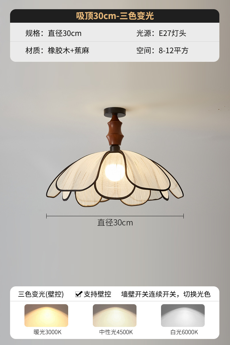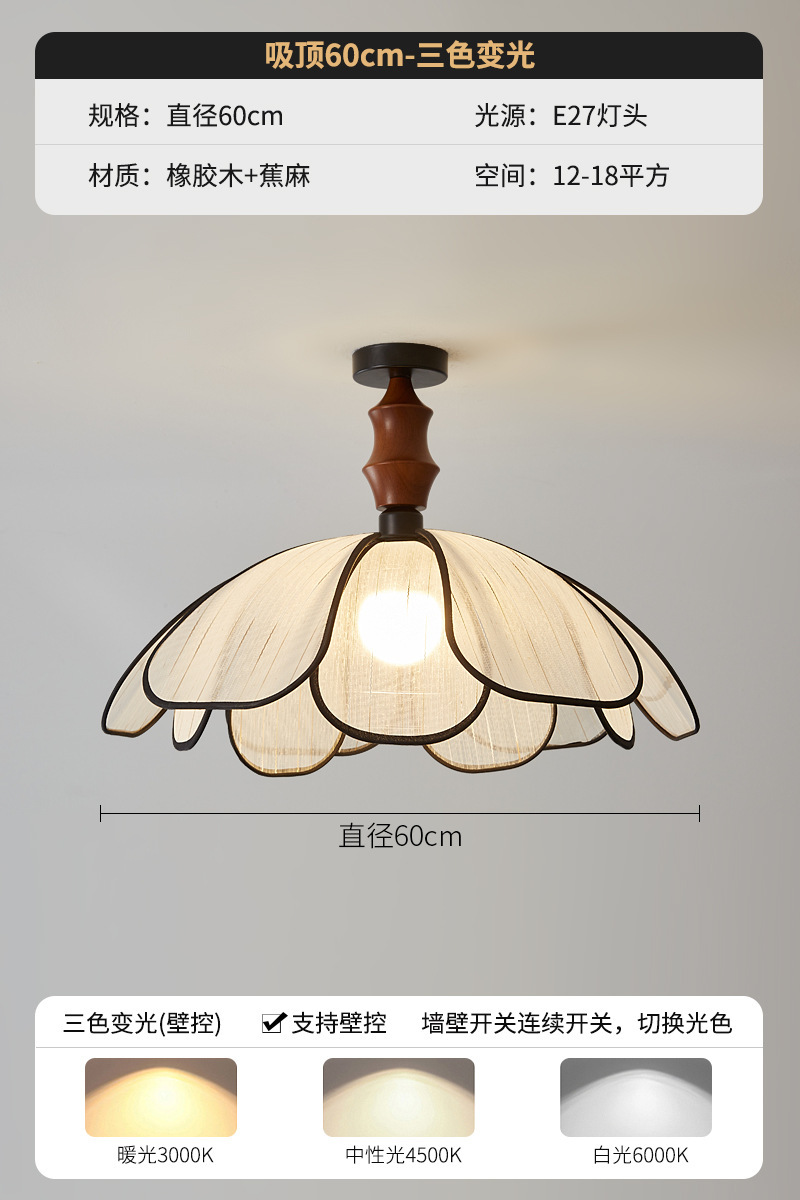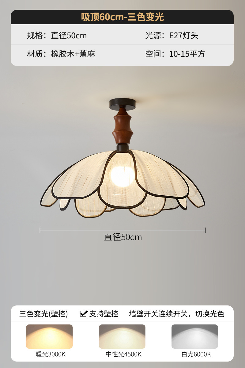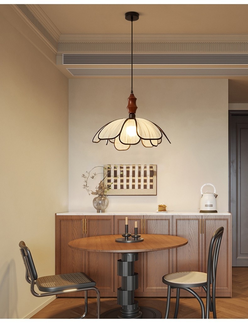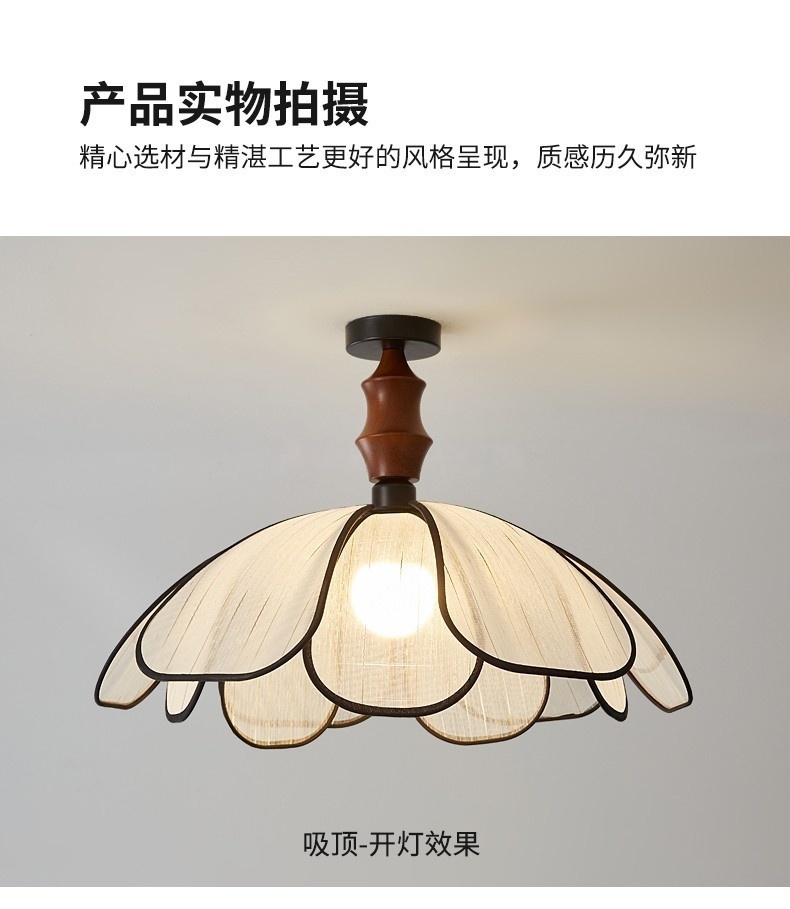 卧室灯法式奶油风网红花瓣吊灯复古设计师民宿个性布艺餐厅房间灯