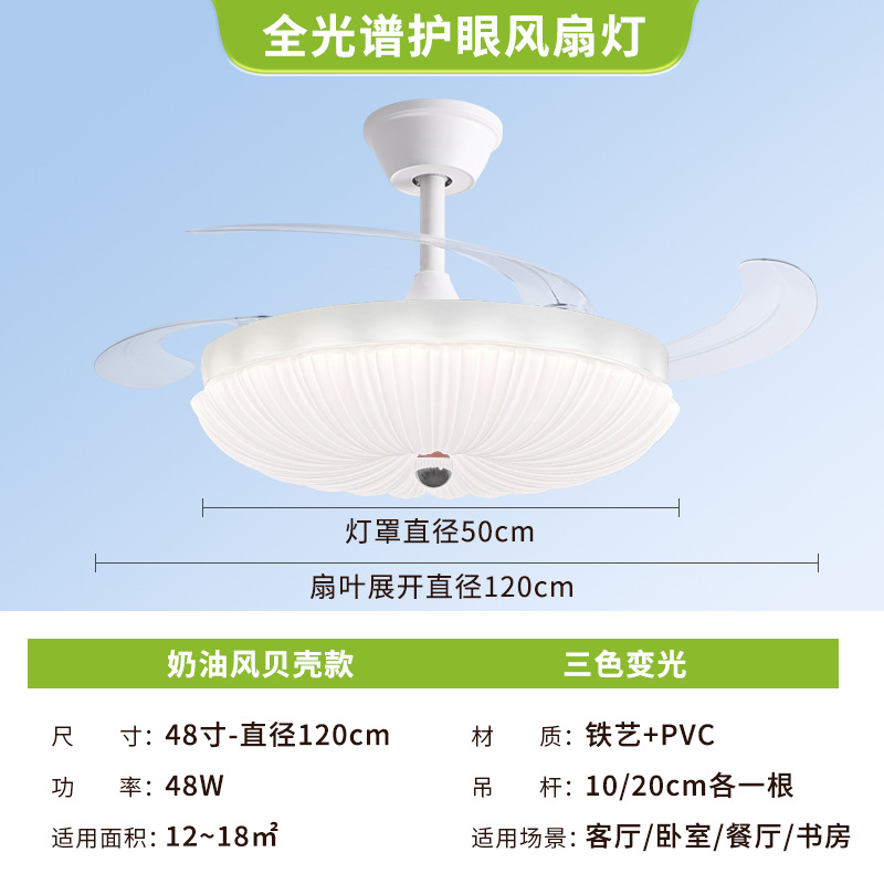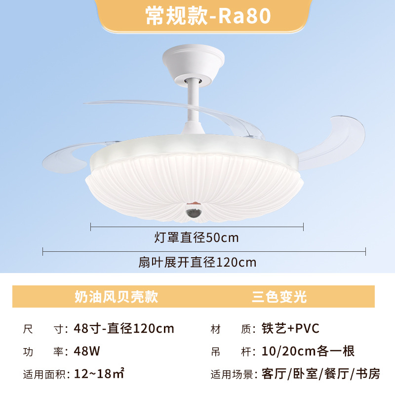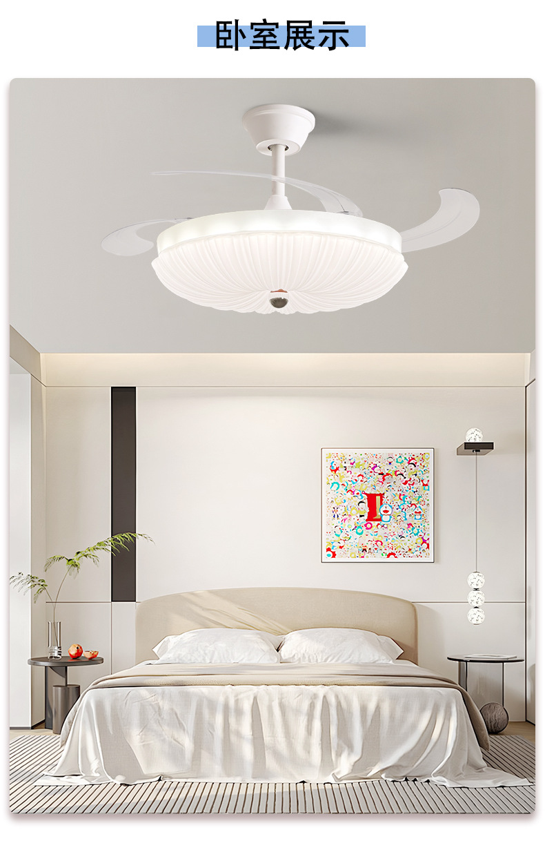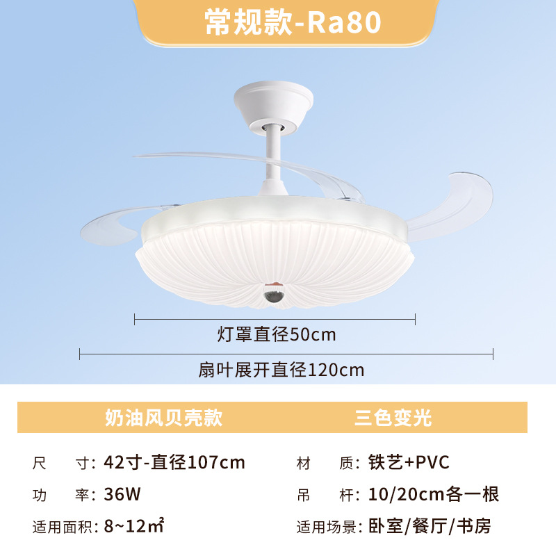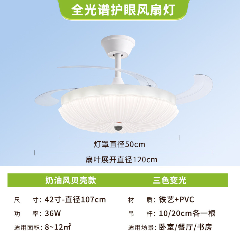 led隐形风扇灯奶油主卧房间主客厅餐厅卧室灯具电扇灯吊扇