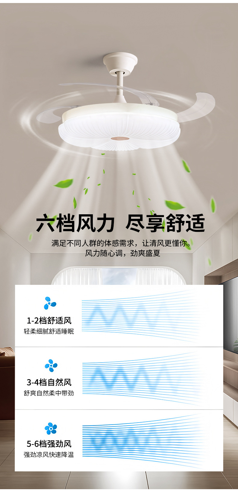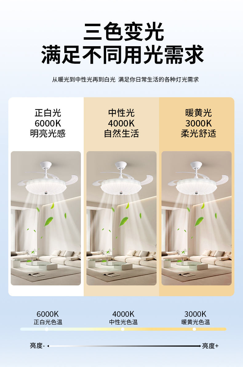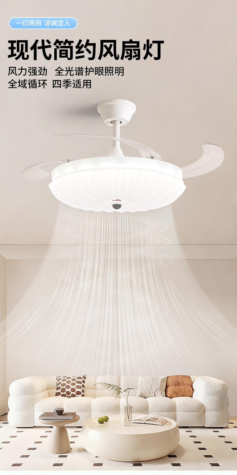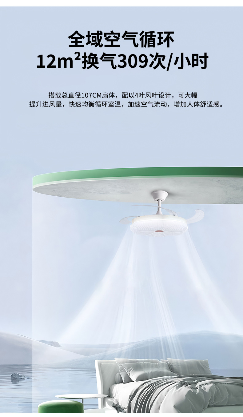 led隐形风扇灯奶油主卧房间主客厅餐厅卧室灯具电扇灯吊扇