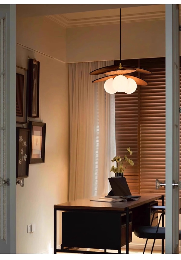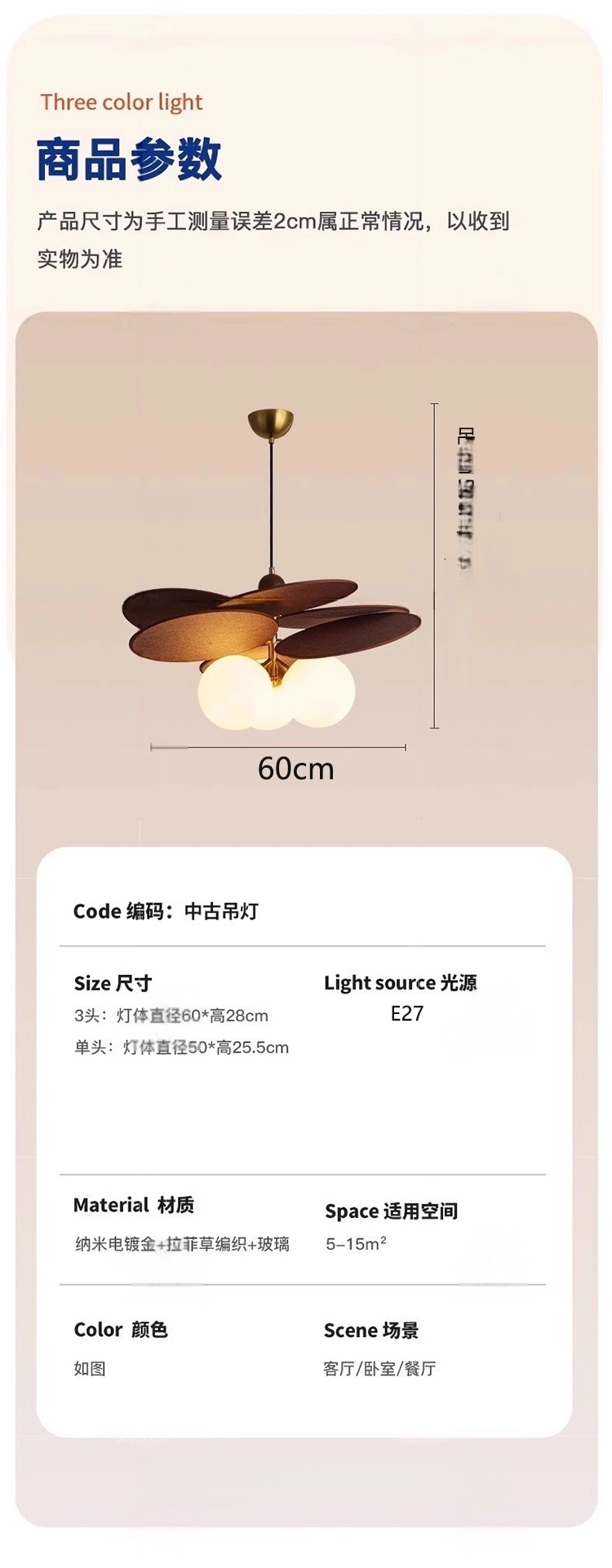 新藤编法式中古风餐厅卧室魔豆吊灯复古创意拉菲草吧台民宿装饰灯