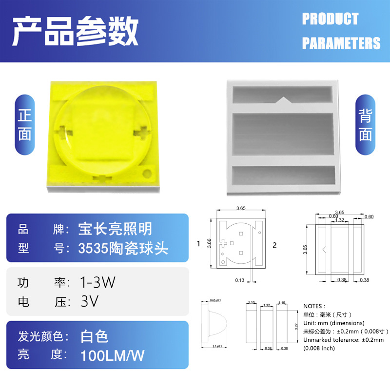 3535灯珠陶瓷白光LED灯珠3w大功率灯珠手电筒灯珠
