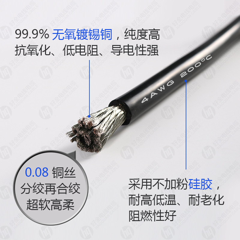 现货国标4平方软硅胶线 耐热耐高温11awg超柔特软硅胶电线