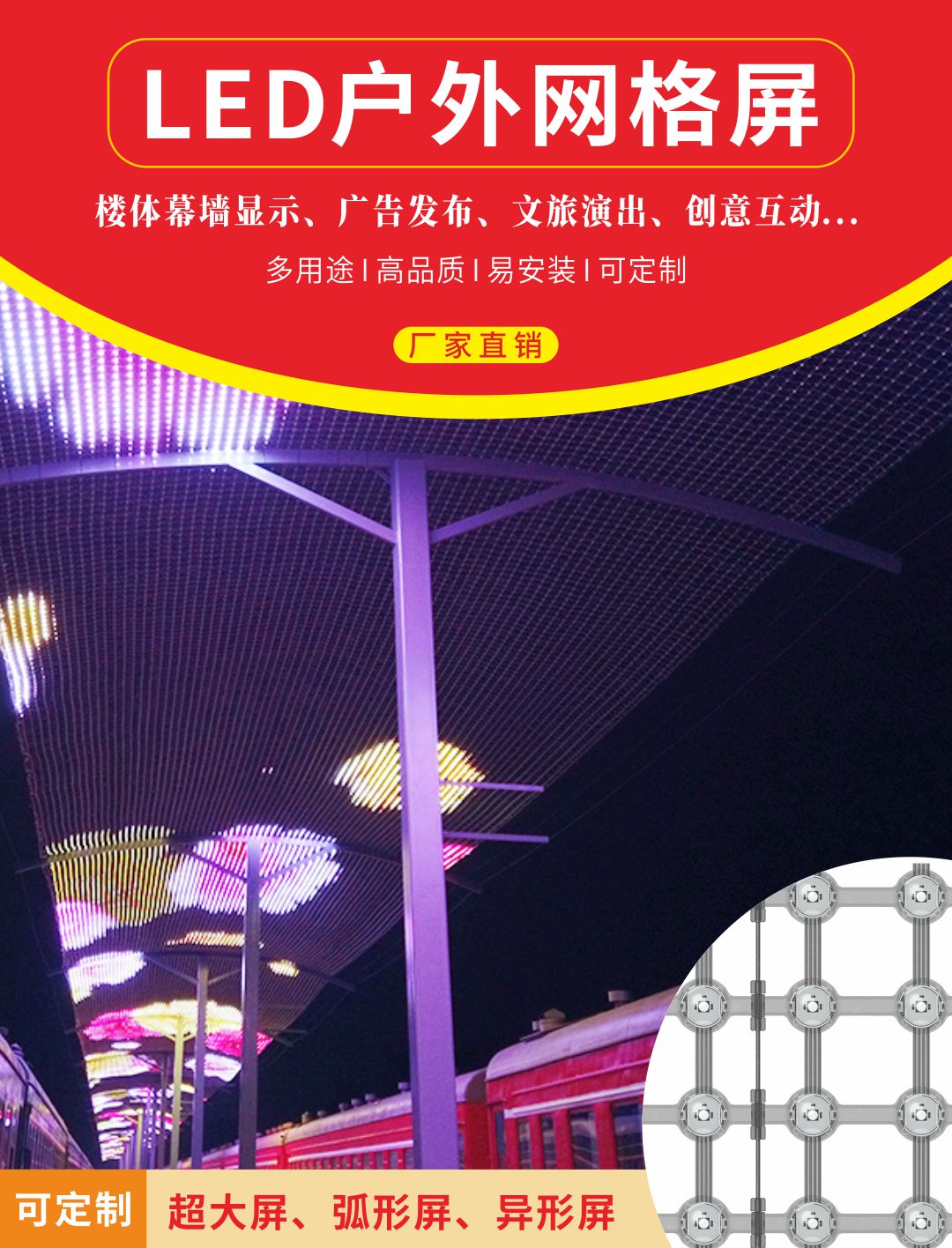 新起点户内外防水全彩智能外控T20LED网格屏柔性透明网格屏