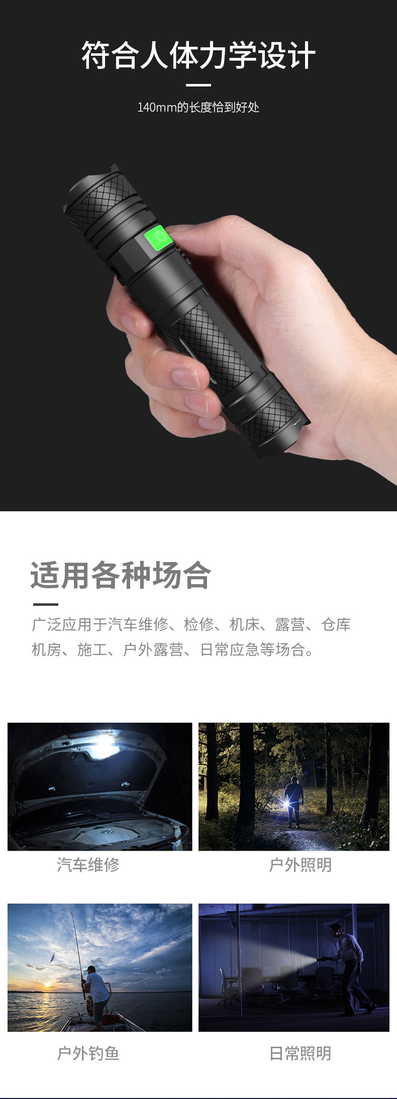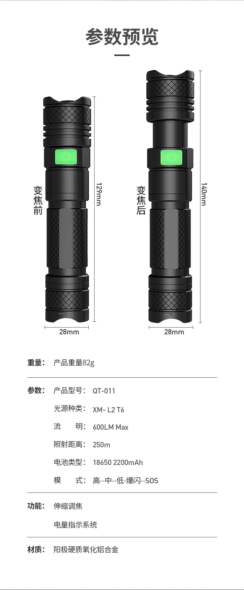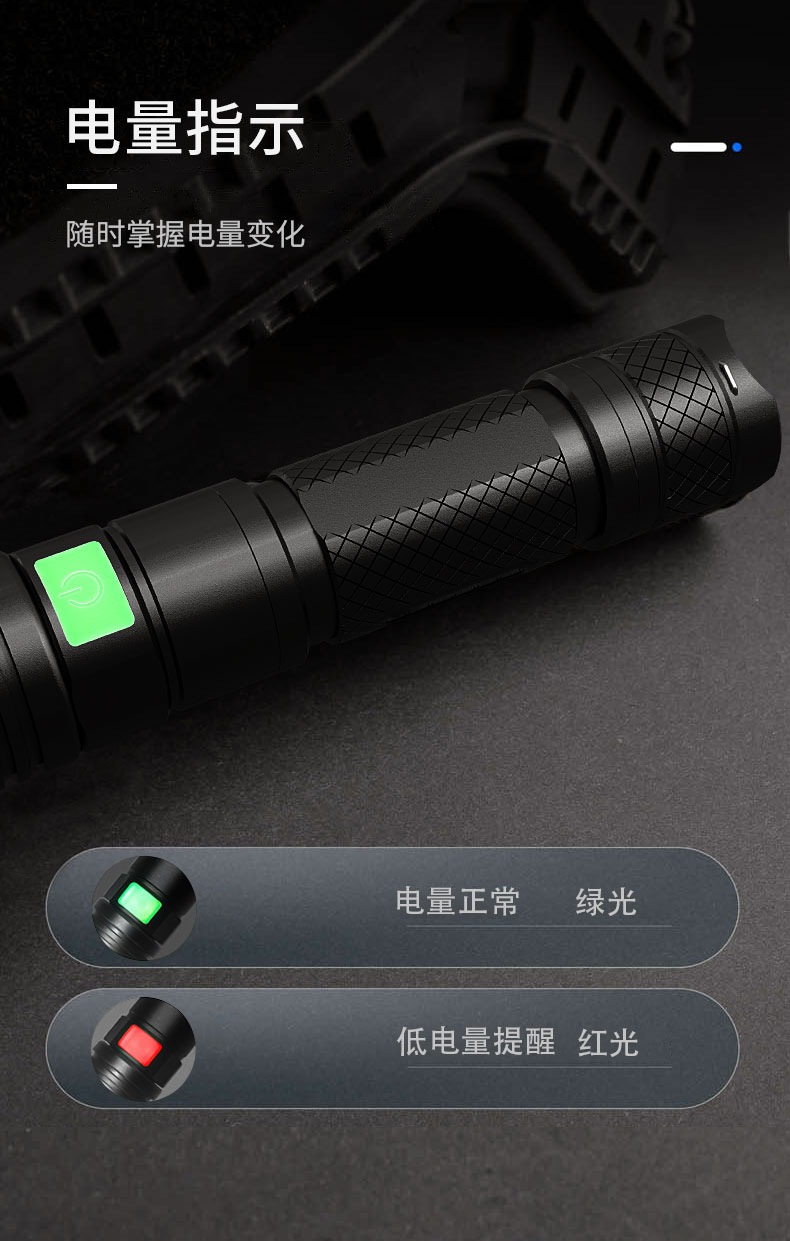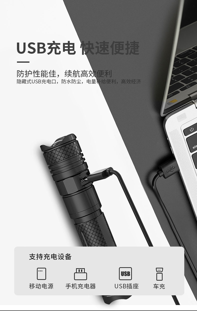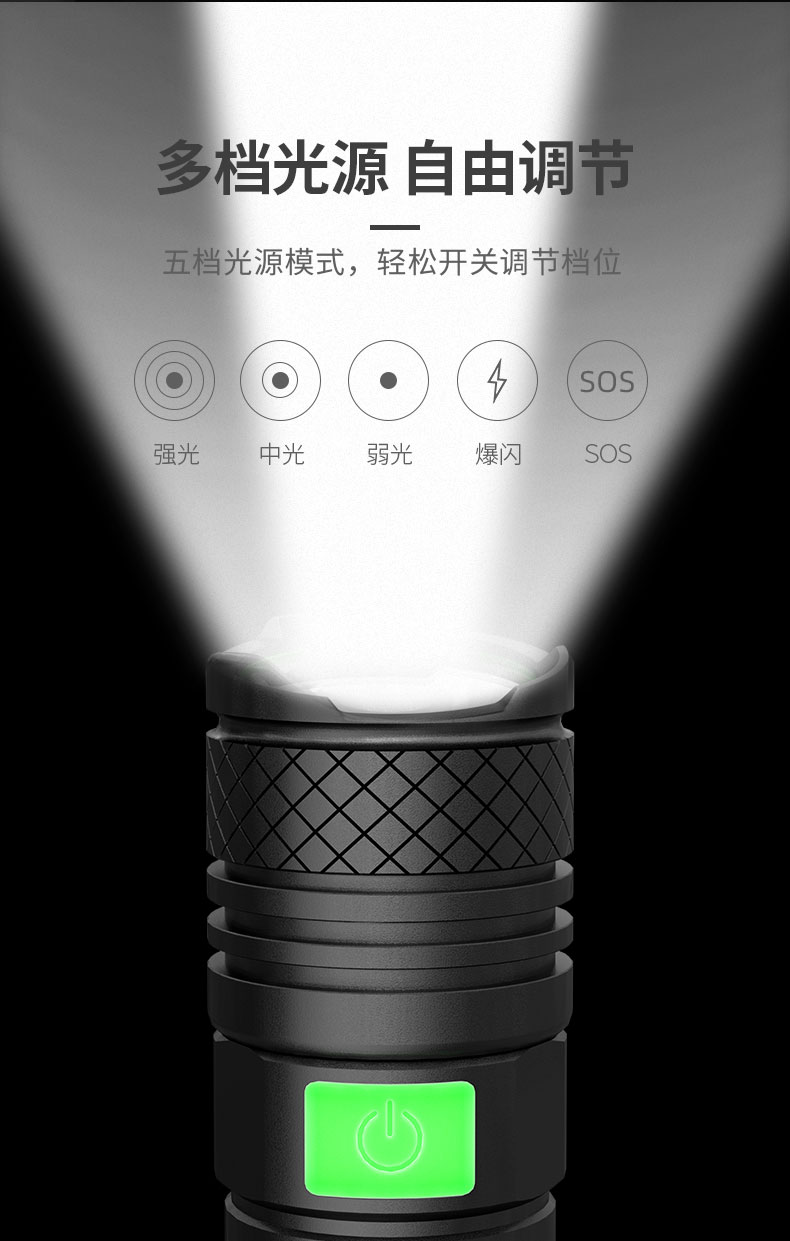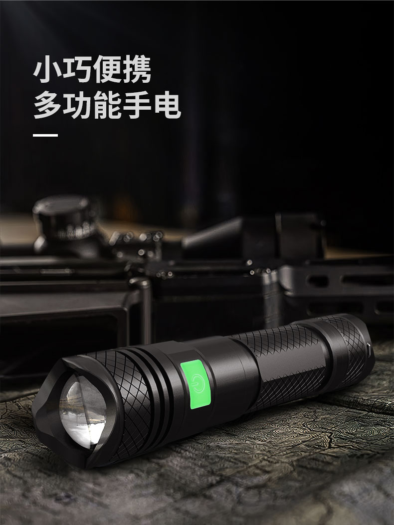 强光手电筒 户外骑行防身18650远射充电多功能LED灯