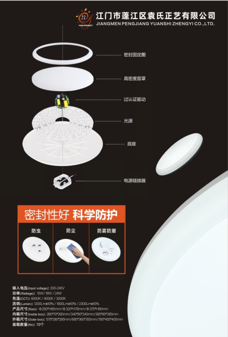 江门市蓬江区袁氏正艺有限公司是一家专业生产注塑灯具、LED灯具,节能灯的厂家。产品广泛应用于家居、写字楼、商场、工厂、店铺、宾馆酒店、公园、休闲广场和街道等公共场所的亮化和美化,也可用于广告招牌、舞台布景、家居装饰等场合。公司致力于追求“绿色照明”,独特的生产工艺技术,生产出一系列节能,环保,亮度高,低光衰的高品质产品,服务于行业中高端市场,是国内专注LED户内灯具、户外照明、商业照明和城市亮化及LED应用的高科技企业之一。 公司创立于1995年,凭借自身多年对照明产品的研究和开发经验及拥有强大的技术团队和设计开发能力,从毛管车间发展到整灯、LED、注塑等多个独立车间。拥有独特的外观结构设计能力,对品质持续改善的能力,及快速响应市场需要的能力,已成为照明产品中高档市场的主流供应商。为客户提供全方位照明解决方案,与客户建立战略伙伴关系,不断提升公司的品牌形象是公司每位员工格守的准则。 我们强调在为客户提供最好产品的同时,不断培训及提升我们员工自身的技能与服务意识,以高效的工作和高品位的产品,满足客户的不同需要。主要致力于低光衰高亮度的商业照明、户外照明产品的研发与制造。具有国际水准的生产和检测设备,实施严格的质量管理。我司产品大部分用在政府工程、五星级大酒店及一些要求品质的地方,深受国内外客户的一致好评和认可。 公司座落于广东著名侨乡 --江门市,秉承“以人为本、创新领先、以质为尊、服务至上”的原则,遵循“专业专注、诚信诚挚”的经营理念,贯彻执行“以质量为本,以诚信为先,持续创新”的质量方针,打造了“袁氏正艺”、“正艺照明”、“煜淳科技”三大国际品牌,并树立了良好的企业形象,为客户提供具有卓越品质的产品,为全球人类开拓绿色照明新纪元做出贡献。