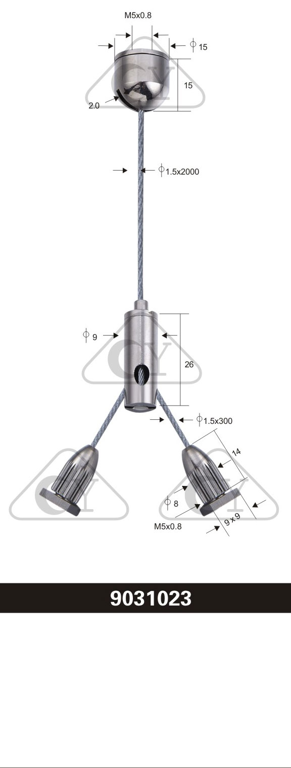 1、产品规格:天花件15x15mm,卡线器9x26mm,钢丝绳1.5x2000mm,