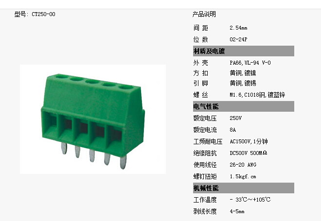 东莞市长河电子有限公司是集开发、生产、销售于一体的专业化的接线端子,端子台,端子,连接器,接插件生产厂家,并拥有一批高素质的管理队伍和技术精英,通过几年的精心经营,产品通过UL、VDE、CB、CQC、ROHS等多种认证,工厂已通过ISO9001:2000质量体系认证. 主要产品有: CA系列弹片式接线端子、CT系列升降式接线端子、CP系列插拨式接线端子、CS系列免螺丝压扣式接线端子、CK系列栅栏式接线端子、CZ系列贯通式接线端子、各种单双排插针及IC插座.常备规格有2.54 、3.50 、3.81 、3.96、5.00 、5.08 、6.35、7.50、7.62、8.255、9.525、10.00 、10.16、11.00、13.00mm。 长河电子占地面积6500平方米,具有多年的专业制造经验,技术力量雄厚,生产检测设备先进,拥有一流的现代化生产厂房和各种新型的全自动化装配设备,拥有一批“高效、专业、富有团队精神”的研发和管理队伍。 在公司的发展过程中,我们先后建立了研发中心、五金模具、塑件模具、注塑成型、装配成品等一系列部门。本公司严格贯彻、执行可持续发展和绿色环保理念,坚持质量、效益和环保全面发展。工厂于2004年顺利通过ISO9001:2000质量体系认证,接线端子先后通过UL、VDE、CB、CQC、ROHS等多种认证,为广大客户提供最严格的品质保障。 长河电子接线端子产品广泛应用于各种电子电器领域,例如照明灯饰、整流器、变压器、仪器仪表、IT通讯、报警装置、电梯设备、家用电器等领域。产品性能优良,服务周到,在国内外市场享有很高的声誉,远销世界20多个国家和地区. 接线端子专家-东莞市长河电子有限公司公司本着“诚信经营、优质服务”的经营理念,愿以与海内外客户携手合作,共同发展。