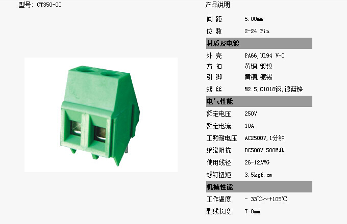 东莞市长河电子有限公司是集开发、生产、销售于一体的专业化的接线端子,端子台,端子,连接器,接插件生产厂家,并拥有一批高素质的管理队伍和技术精英,通过几年的精心经营,产品通过UL、VDE、CB、CQC、ROHS等多种认证,工厂已通过ISO9001:2000质量体系认证. 主要产品有: CA系列弹片式接线端子、CT系列升降式接线端子、CP系列插拨式接线端子、CS系列免螺丝压扣式接线端子、CK系列栅栏式接线端子、CZ系列贯通式接线端子、各种单双排插针及IC插座.常备规格有2.54 、3.50 、3.81 、3.96、5.00 、5.08 、6.35、7.50、7.62、8.255、9.525、10.00 、10.16、11.00、13.00mm。 长河电子占地面积6500平方米,具有多年的专业制造经验,技术力量雄厚,生产检测设备先进,拥有一流的现代化生产厂房和各种新型的全自动化装配设备,拥有一批“高效、专业、富有团队精神”的研发和管理队伍。 在公司的发展过程中,我们先后建立了研发中心、五金模具、塑件模具、注塑成型、装配成品等一系列部门。本公司严格贯彻、执行可持续发展和绿色环保理念,坚持质量、效益和环保全面发展。工厂于2004年顺利通过ISO9001:2000质量体系认证,接线端子先后通过UL、VDE、CB、CQC、ROHS等多种认证,为广大客户提供最严格的品质保障。 长河电子接线端子产品广泛应用于各种电子电器领域,例如照明灯饰、整流器、变压器、仪器仪表、IT通讯、报警装置、电梯设备、家用电器等领域。产品性能优良,服务周到,在国内外市场享有很高的声誉,远销世界20多个国家和地区. 接线端子专家-东莞市长河电子有限公司公司本着“诚信经营、优质服务”的经营理念,愿以与海内外客户携手合作,共同发展。