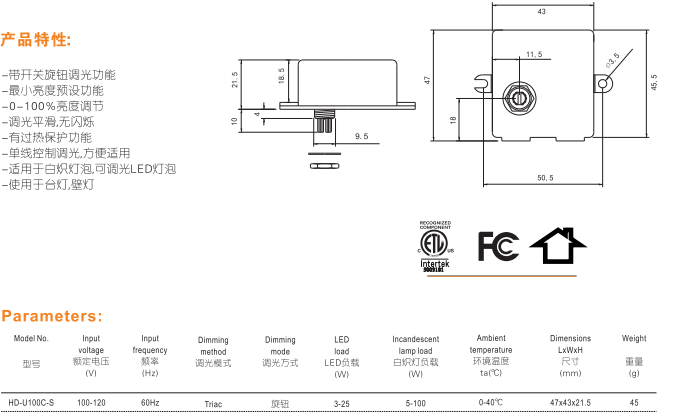 美规内置调光器