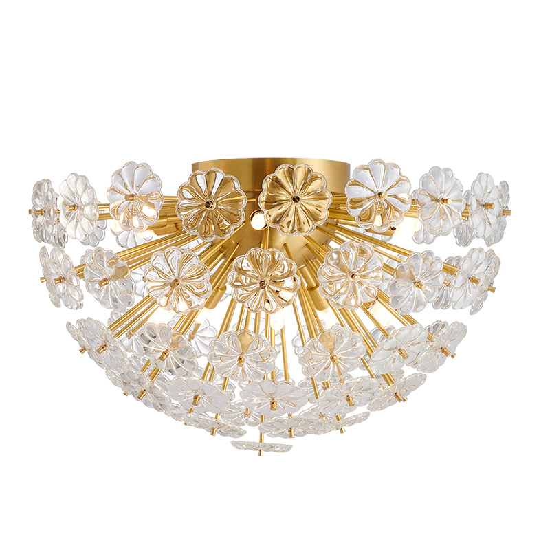 轻奢吸顶灯花朵花瓣玻璃半吸顶灯 卧室房间样板房工程吸顶灯爆款