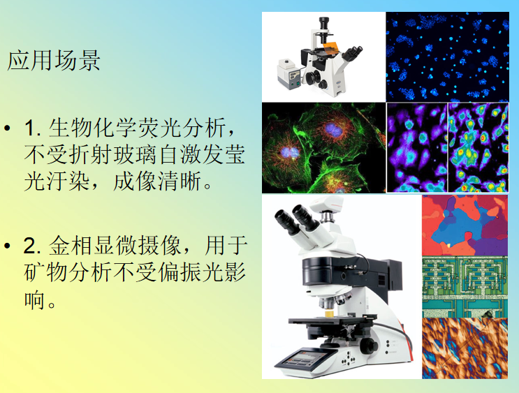 反射式显微镜物镜为铝质主镜及副镜反射面连装配定位分别为一次性超精密单电金刚石加工,生产成本低,易生产。